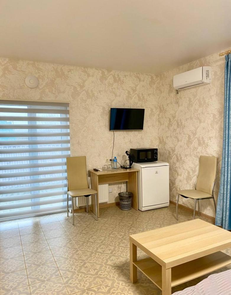 В номере: двуспальная кровать; вместительный шкаф для хранения вещей; телевизор со спутниковыми каналами; холодильник; электрический чайник; микроволновка; собственная ванная комната; свежее и чистое постельное белье; махровые полотенца на каждого гостя; косметические принадлежности и тапочки; теплый пол.