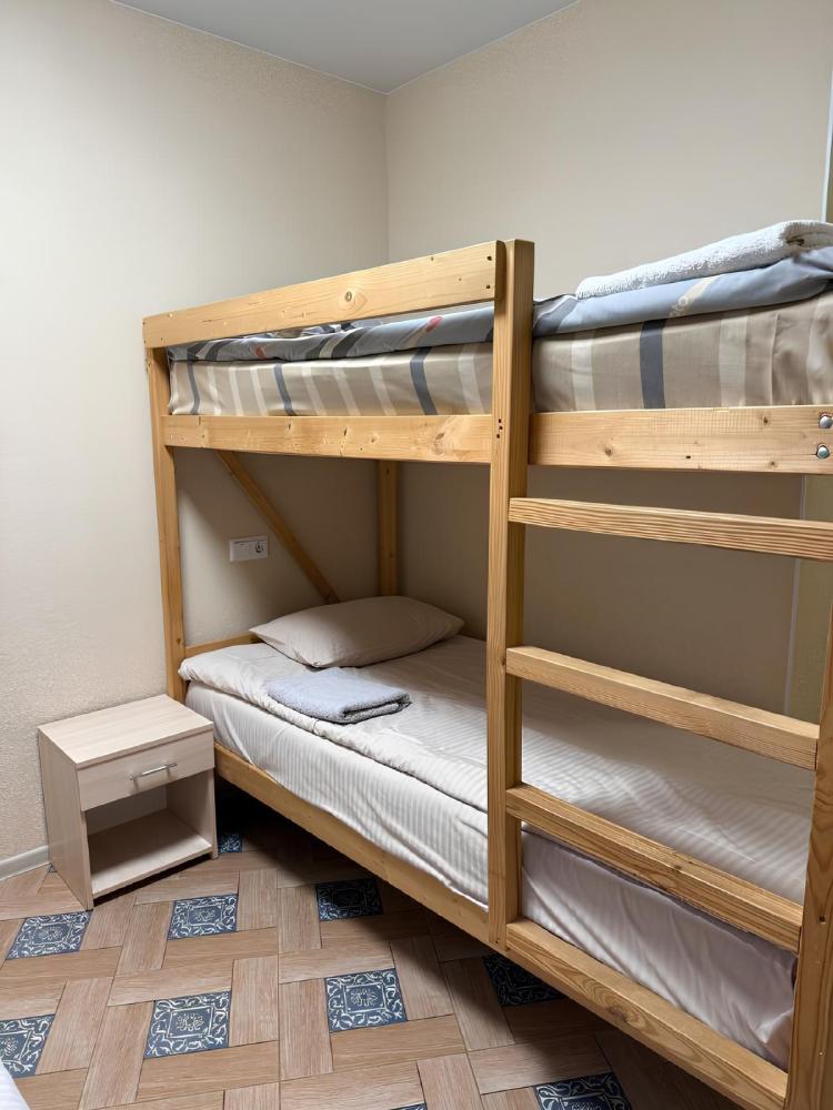 Пространство выполнено в элегантном стиле, сочетающем современный дизайн и функциональность. Светлые тона интерьера создают приятную атмосферу отдыха и релаксации. Номер оснащен удобными односпальной и двухъярусной кроватями с качественным постельным бельем, обеспечивающим максимальный комфорт сна. Для удобства размещения багажа имеется просторный гардероб с зеркалом. Современная бытовая техника включает телевизор с плоским экраном, подключенный к кабельному телевидению, холодильник для напитков и продуктов питания, чайник и микроволновая печь. Санузел оборудован душевой кабинкой, феном, косметическими средствами и мягкими полотенцами.