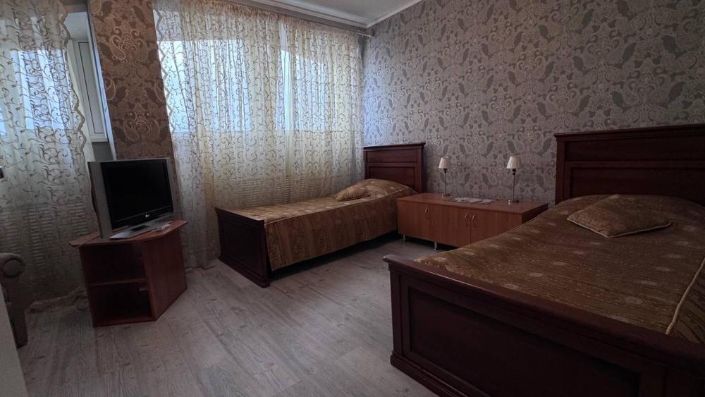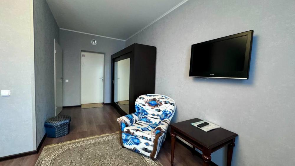 двухкомнатный номер с двуспальной кроватью, санузел в номере, имеется чайник, холодильник, телевизор