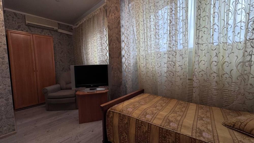 Номер с одной двуспальной кроватью общей площадью 20 кв.м., санузел в номере. В номере имеется электрический чайник, телевизор.