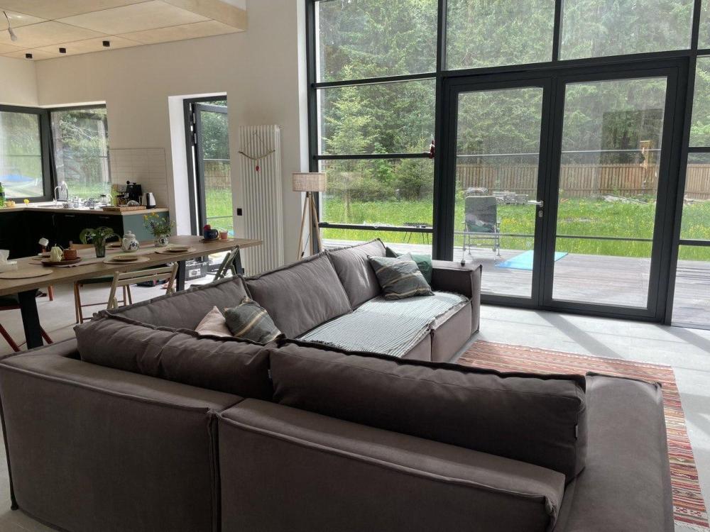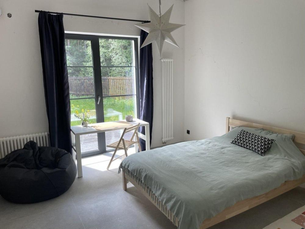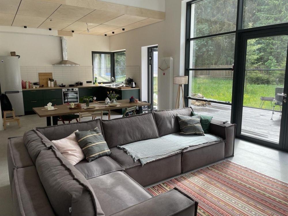 Частный дом «В лесу Woodcamp» находится в сосновом лесу по соседству с рекой. Рядом: оборудованный пляж с лодочной станцией, прокатом сапбордов, спасательной вышкой и прибрежными ресторанами. В распоряжении гостей коттедж площадью 150 кв. м с 3 спальнями, гостиной с панорамными окнами с видом на лес и укомплектованной кухней. Для вечерних посиделок и гриля — мангал во дворе. Парковка на 3 автомобиля прямо на участке. Для активного отдыха: 2 велосипеда и сапборд без дополнительной платы. Дом подходит для проведения семейных каникул в окружении соснового леса. Поблизости находится водохранилище, которое в холодный сезон используется как естественная лыжня для прогулок и спортивного катания. В гостиной установлен камин, а панорамные окна выходят на лес.