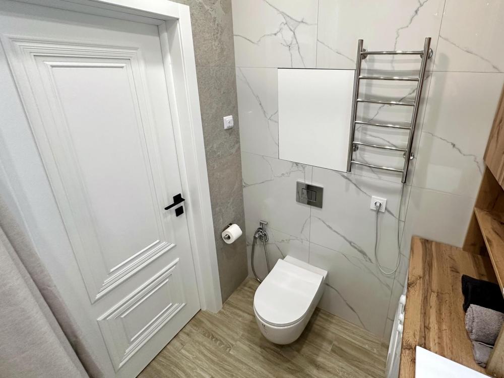 Просторный и светлый интерьер с дизайнерским ремонтом, который радует глаз и создает комфортную обстановку. Уютная гостиная, спальня с двуспальной кроватью, полностью оборудованная кухня с современными приборами, посудомоечной машиной и всем необходимым для приготовления блюд. В квартире есть все удобства: бесплатный Wi-Fi, два кондиционер, утюг и гладильная доска, стиральная машина и фен.