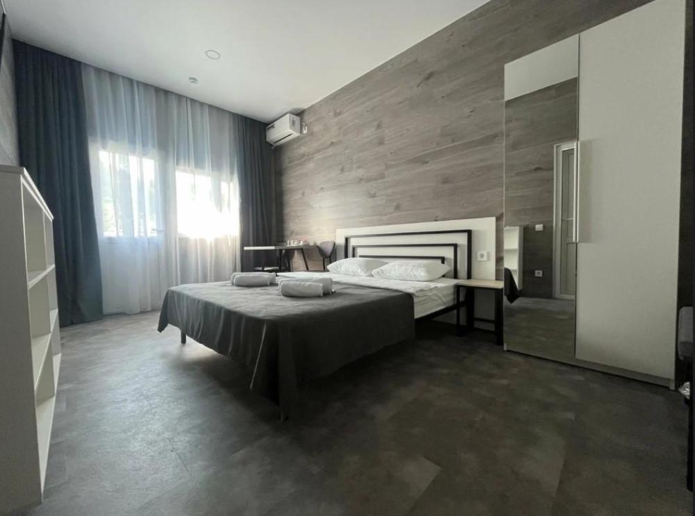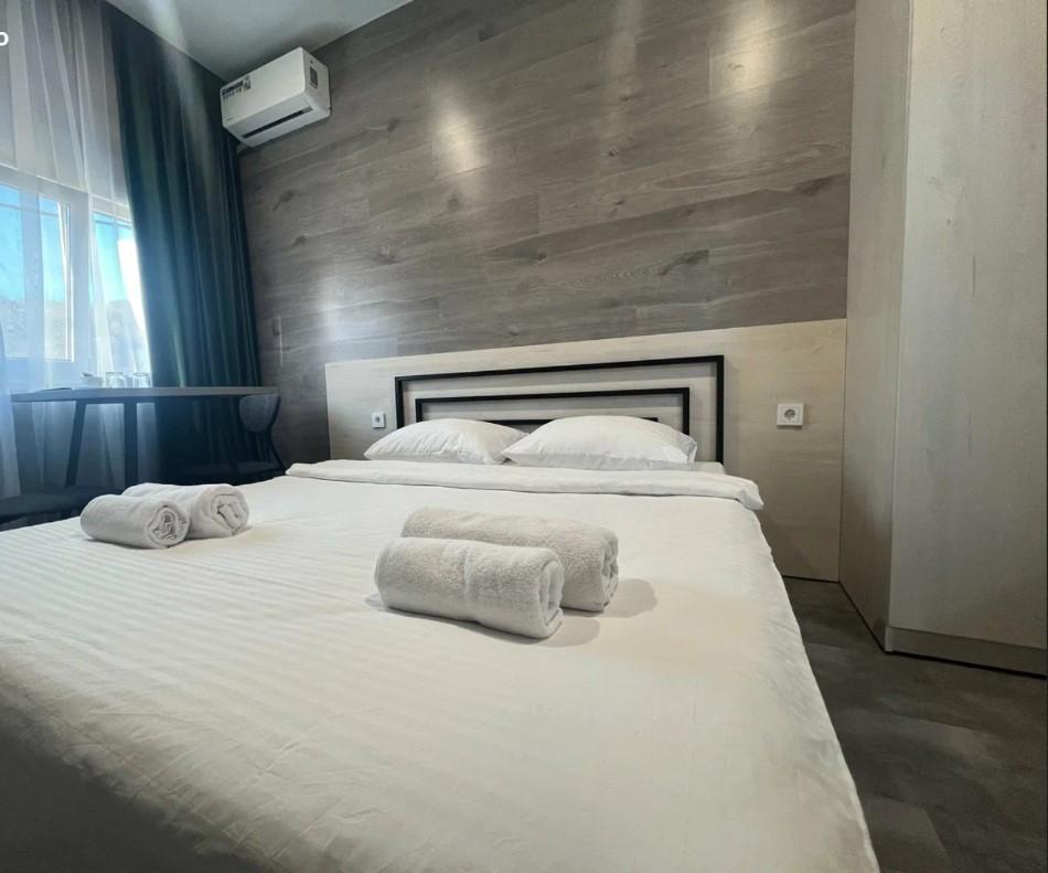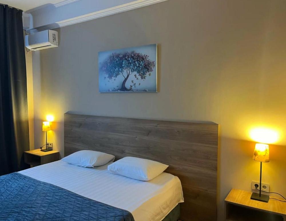 Уютная комната с двуспальной кроватью 15 кв.м. Для гостей есть все необходимое для комфортного отдыха: место для хранения вещей,телевизор,холодильник, кондиционер,работает wi-fi, есть удобства.
