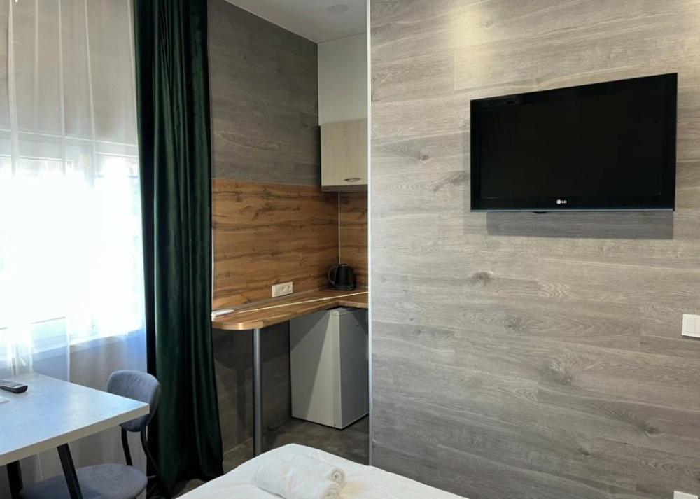 Уютная комната с двуспальной или двумя односпальными кроватями 22 кв.м. Для гостей есть все необходимое для комфортного отдыха: место для хранения вещей,телевизор,холодильник, кондиционер,работает wi-fi, есть удобства.