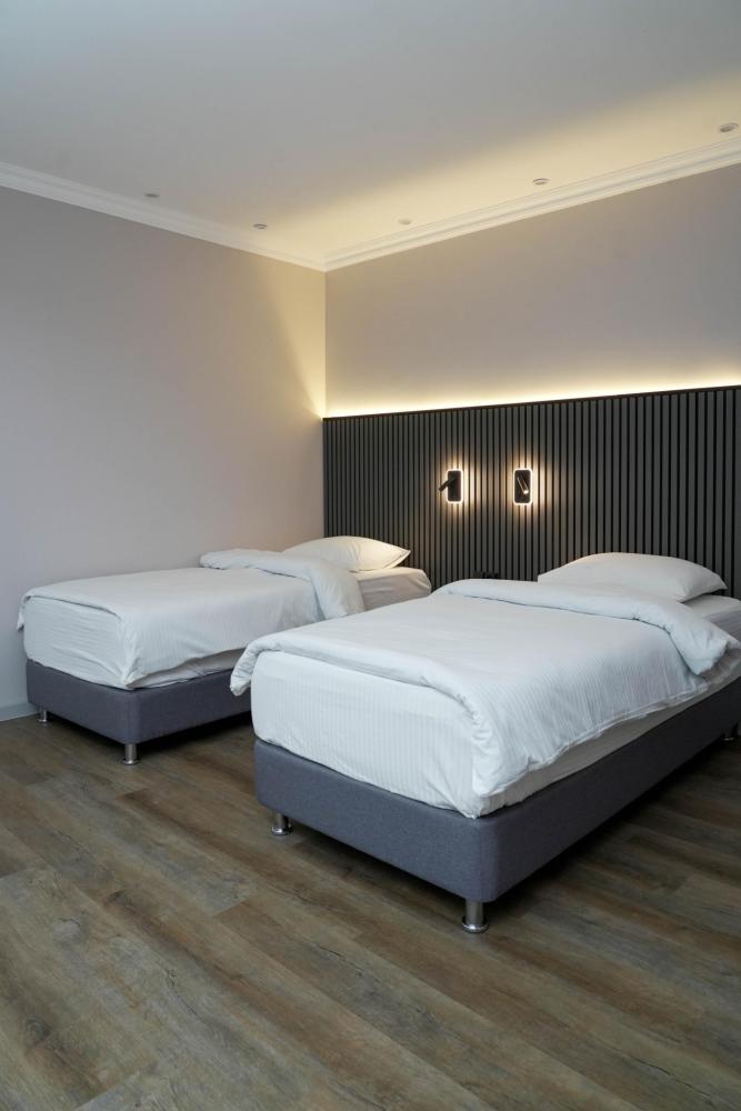Номер оборудован кондиционером , сан узлом, душевой, wi-fi, жк- телевизором, спутниковым телевидением, телефоном, услуга заказ в номер, электро чайник, ежедневная уборка в номере
