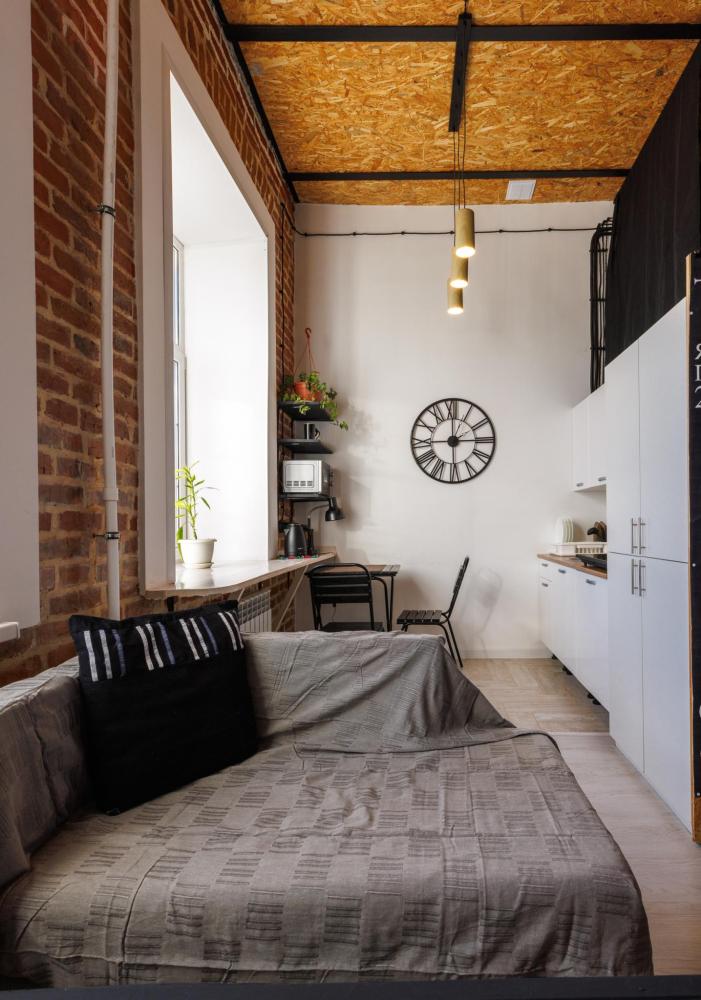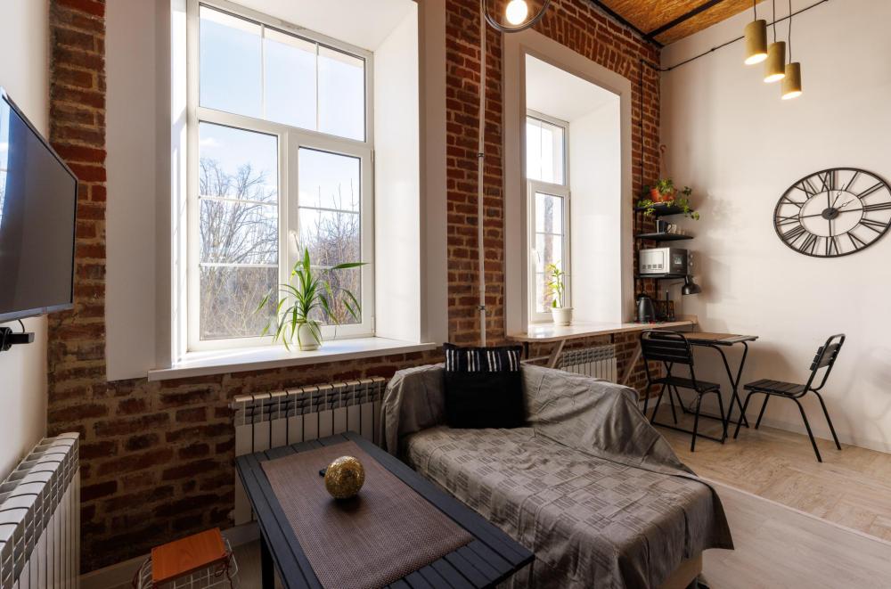 Апартаменты Лофт на улице Тургеневская. Для комфортного проживания гостей апартаменты оборудованы всем необходимым включая: фен, утюг, стиральная машина, чайник, микроволновка, плита, холодильник, телевизор, WI-FI, столовые приборы и базовая посуда, чай и кофе. Гостям предоставляются полотенца, гель для душа, свежее постельное белье и тапочки.