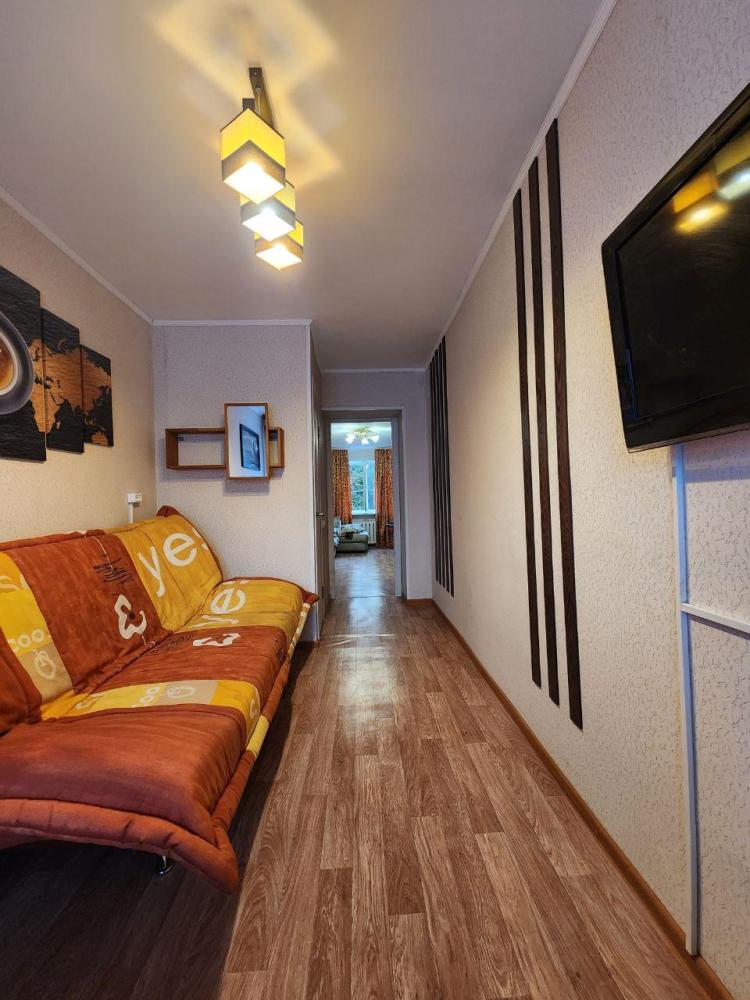 Уютные апартаменты, оборудованные всем необходимым для комфортного проживания. В апартаментах: двуспальная кровать, два раскладных дивана, кухня с обеденной зоной, оборудованная всей необходимой техникой и посудой, санузел, ванная комната.