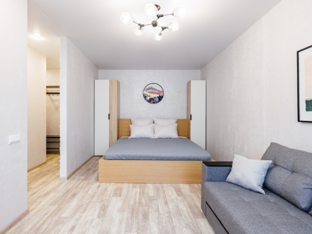 Уютные апартаменты на проспекте Ленина. Для комфортного проживания гостей апартаменты оборудованы всем необходимым включая: фен, утюг, стиральная машина, чайник, микроволновка, плита, холодильник, телевизор, WI-FI, столовые приборы и базовая посуда, чай и кофе. Гостям предоставляются полотенца, гель для душа, свежее постельное белье и тапочки. Кровати: 1 диван-кровать, 1 двуспальная. Общая площадь: 32 м², этаж: 5 из 5.