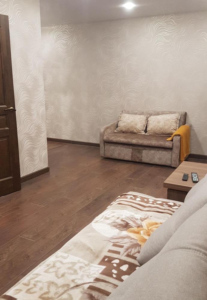 Уютные апартаменты, оборудованные всем необходимым для комфортного проживания. В апартаментах: двуспальная кровать, два раскладных дивана, кухня, оборудованная необходимой техникой и посудой, санузел с душем, стиральная машина.