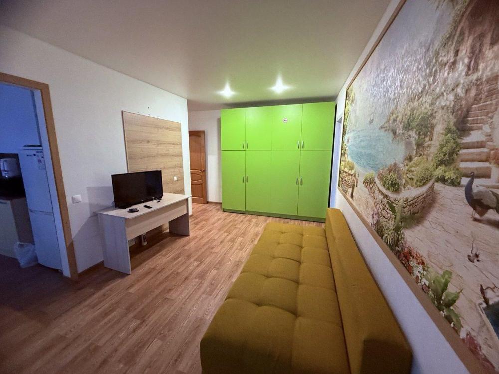 Уютные апартаменты оборудованные всем необходимым для комфортного проживания. В апартаментах: двуспальная кровать, раскладной диван, кухня с обеденной зоной, оборудованная техникой и посудой, санузел с душем.
