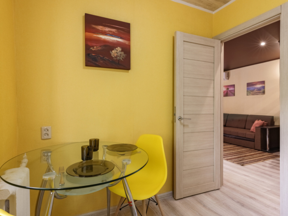 Уютные апартаменты на улице Дмитрия Ульянова, этаж: 2 из 5. Для комфортного проживания гостей апартаменты оборудованы всем необходимым включая: фен, утюг, стиральная машина, чайник, микроволновка, плита, холодильник, телевизор, WI-FI, столовые приборы и базовая посуда, чай и кофе. Гостям предоставляются полотенца, гель для душа, свежее постельное белье и тапочки.