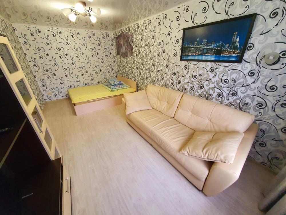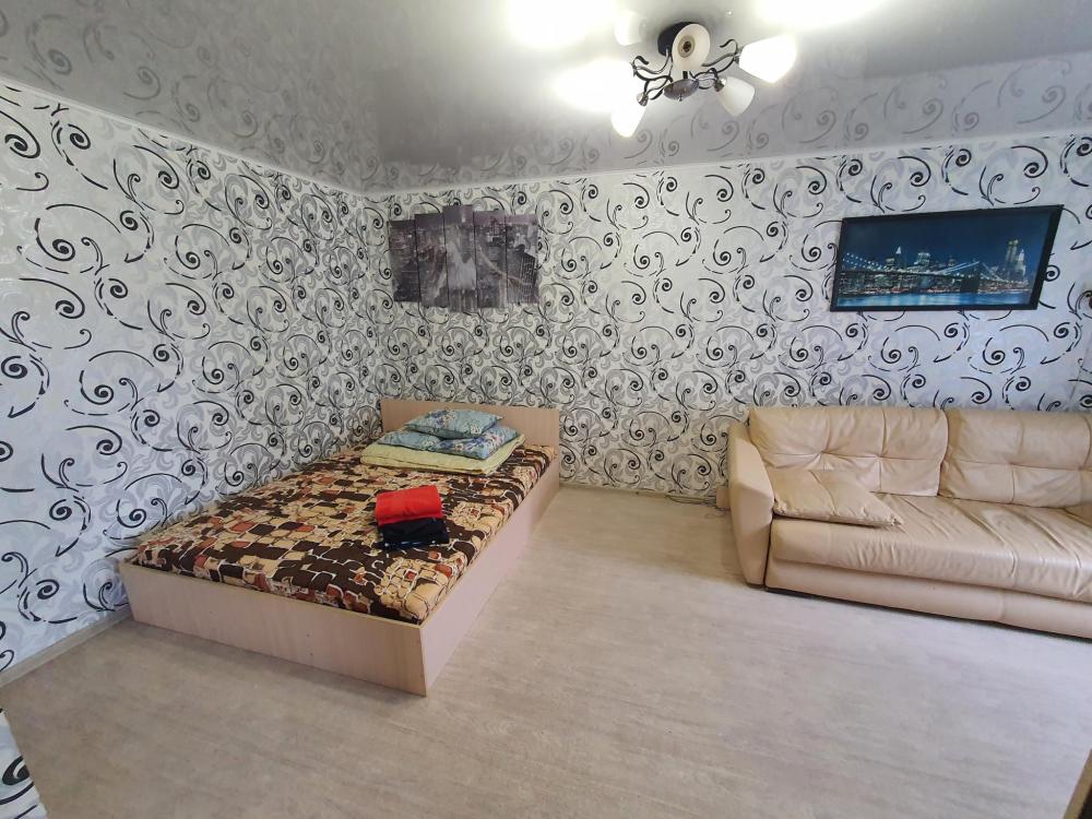 Однокомнатные апартаменты, оборудованные всем необходимым для комфортного проживания. В апартаментах: двуспальная кровать, диван, кухня, оборудованная необходимой техникой и посудой, стиральная машина, санузел с ванной.