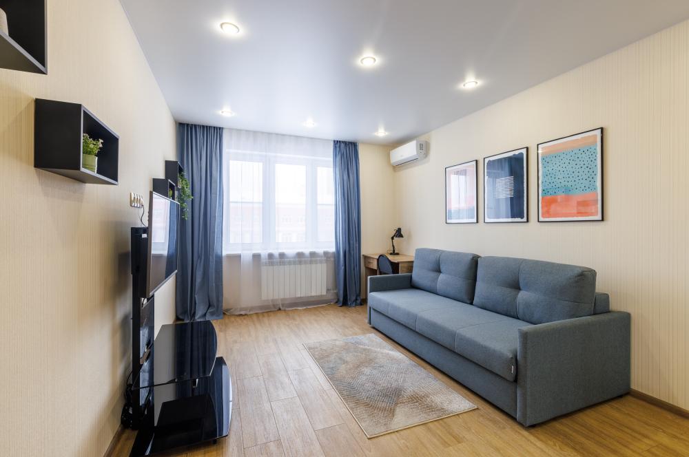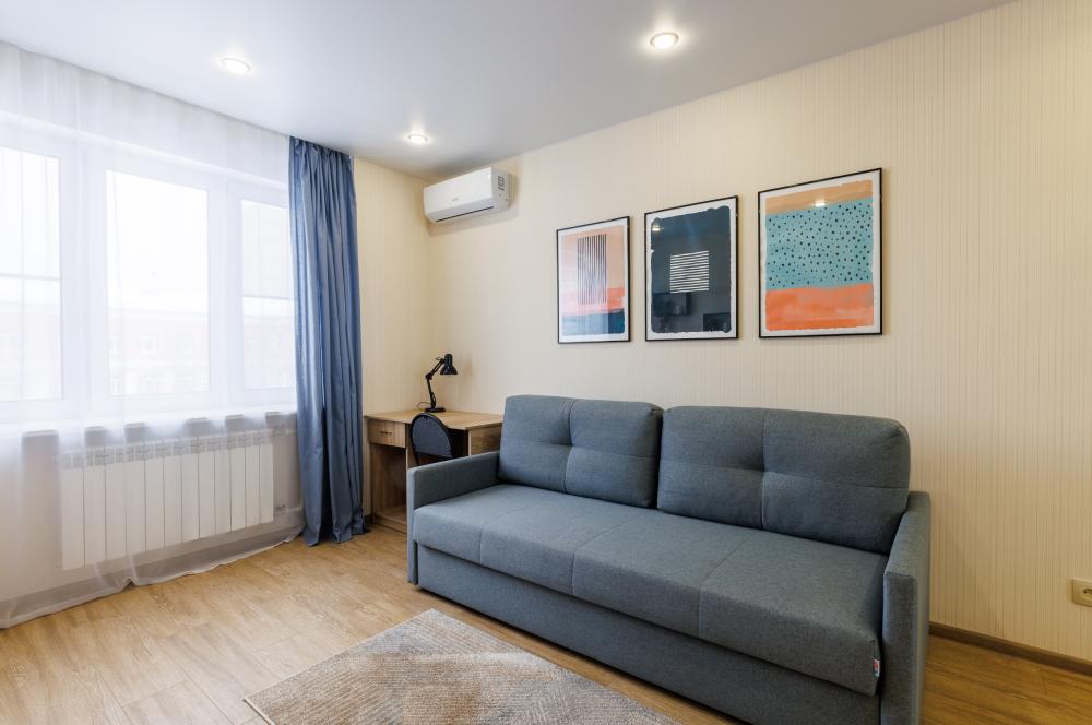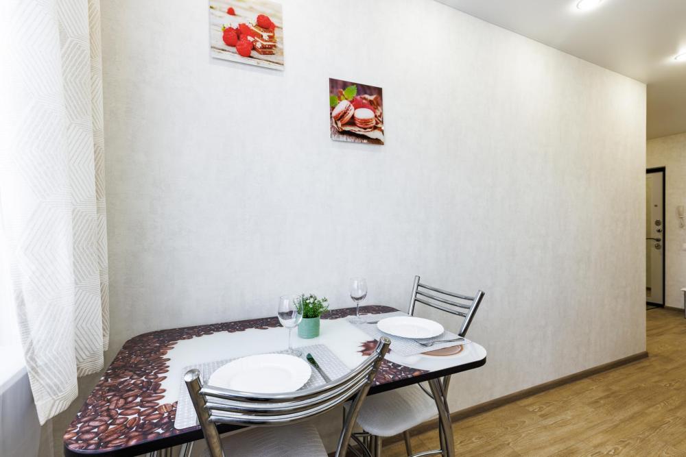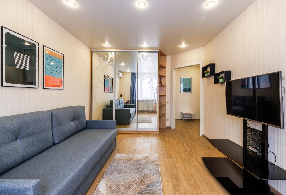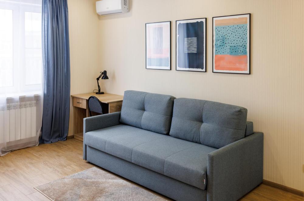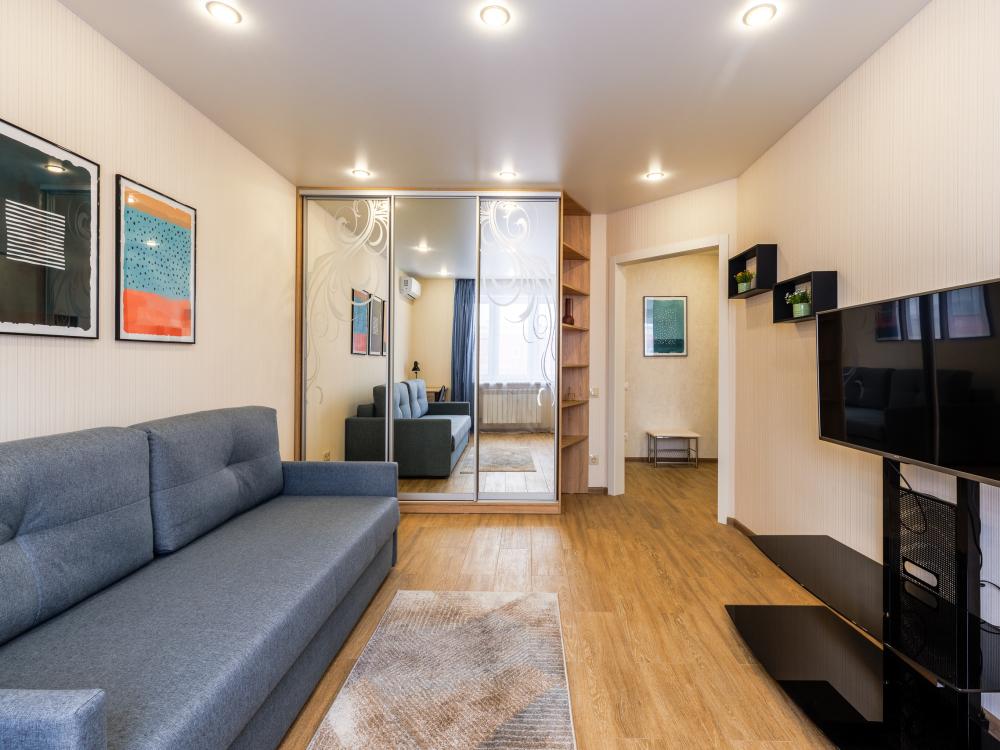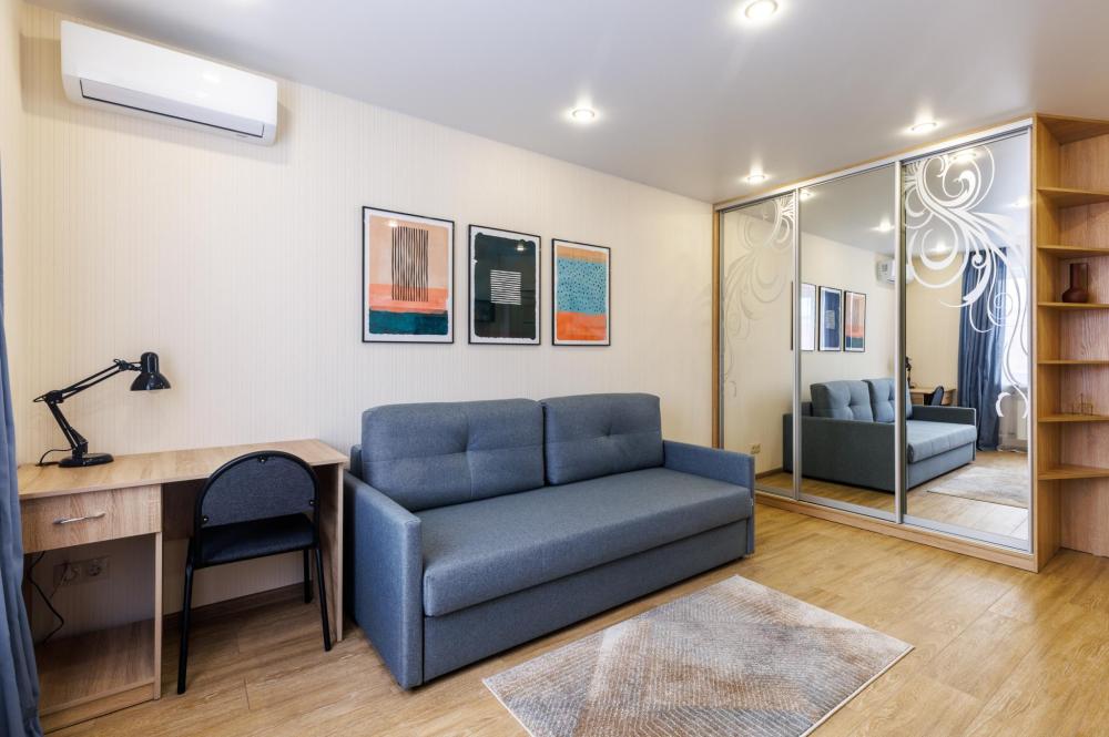 Уютные апартаменты на улице Фрунзе. Для комфортного проживания гостей апартаменты оборудованы всем необходимым включая: фен, утюг, стиральная машина, чайник, микроволновка, плита, холодильник, телевизор, WI-FI, столовые приборы и базовая посуда, чай и кофе. Гостям предоставляются полотенца, гель для душа, свежее постельное белье и тапочки.