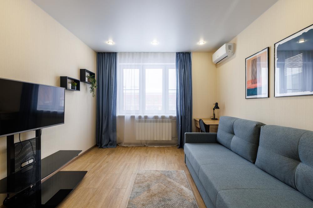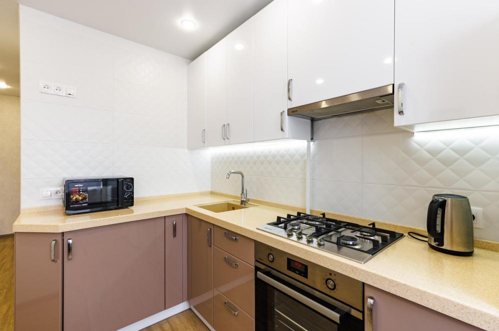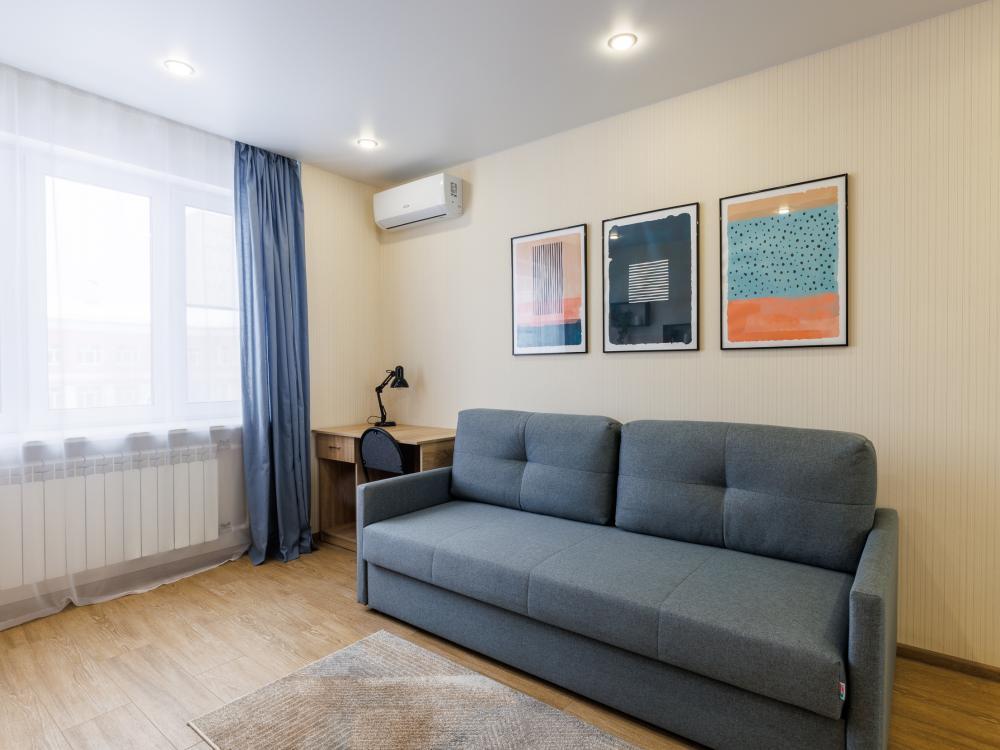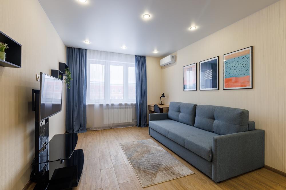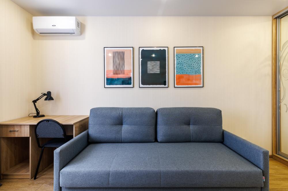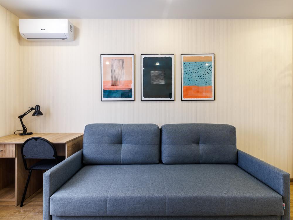 Уютные апартаменты на улице Фрунзе. Для комфортного проживания гостей апартаменты оборудованы всем необходимым включая: фен, утюг, стиральная машина, чайник, микроволновка, плита, холодильник, телевизор, WI-FI, столовые приборы и базовая посуда, чай и кофе. Гостям предоставляются полотенца, гель для душа, свежее постельное белье и тапочки.