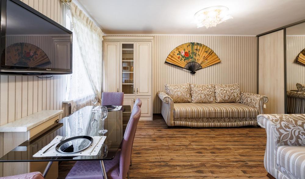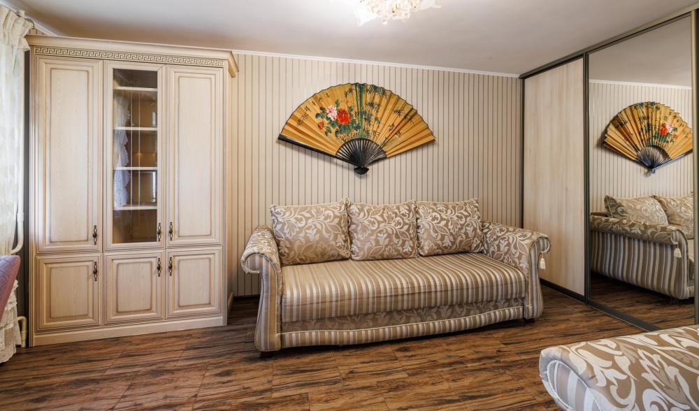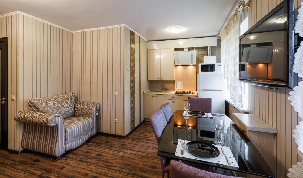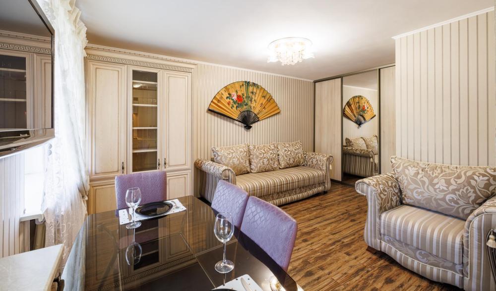 Уютные апартаменты на улице Фрунзе. Для комфортного проживания гостей апартаменты оборудованы всем необходимым включая: фен, утюг, стиральная машина, чайник, микроволновка, плита, холодильник, телевизор, WI-FI, столовые приборы и базовая посуда, чай и кофе. Гостям предоставляются полотенца, гель для душа, свежее постельное белье и тапочки.