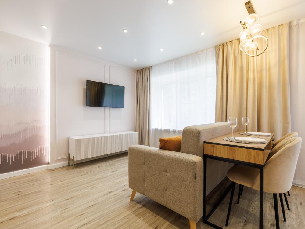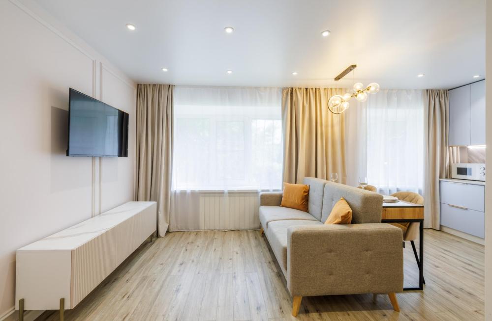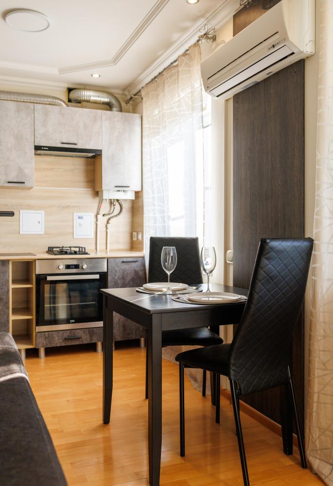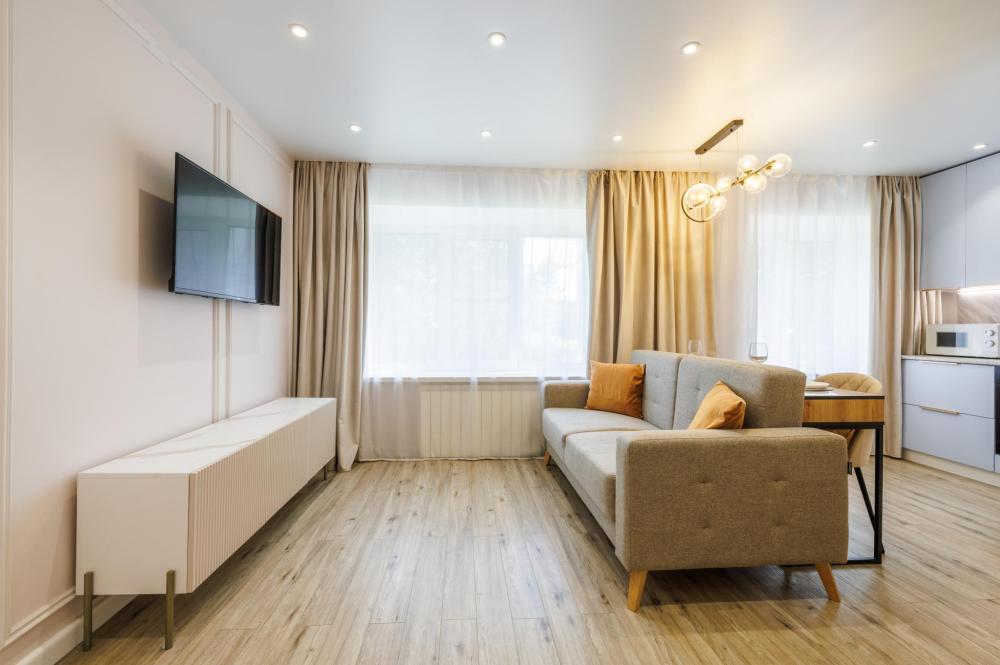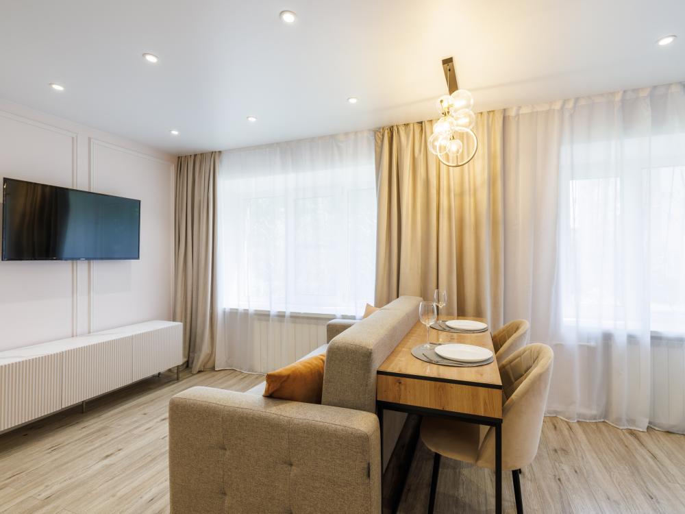 Уютные апартаменты на улице Фрунзе. Для комфортного проживания гостей апартаменты оборудованы всем необходимым включая: фен, утюг, стиральная машина, чайник, микроволновка, плита, холодильник, телевизор, WI-FI, столовые приборы и базовая посуда, чай и кофе. Гостям предоставляются полотенца, гель для душа, свежее постельное белье и тапочки.