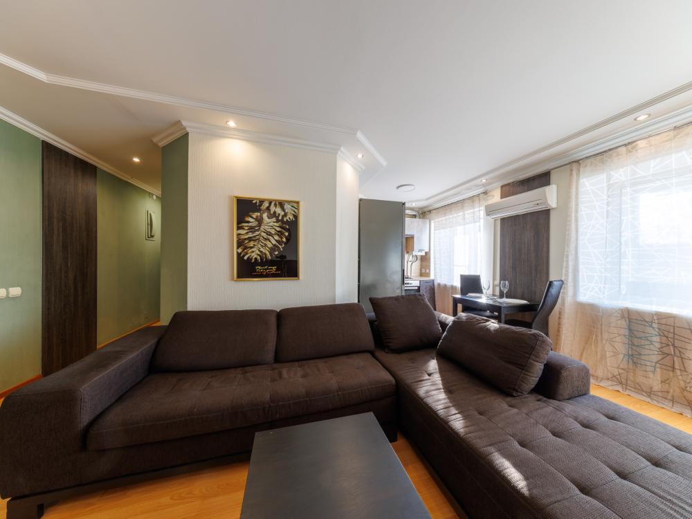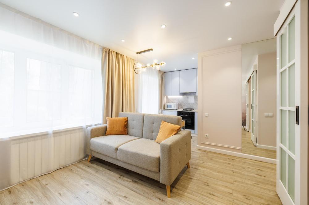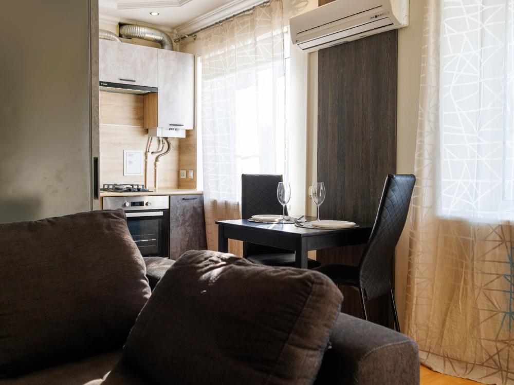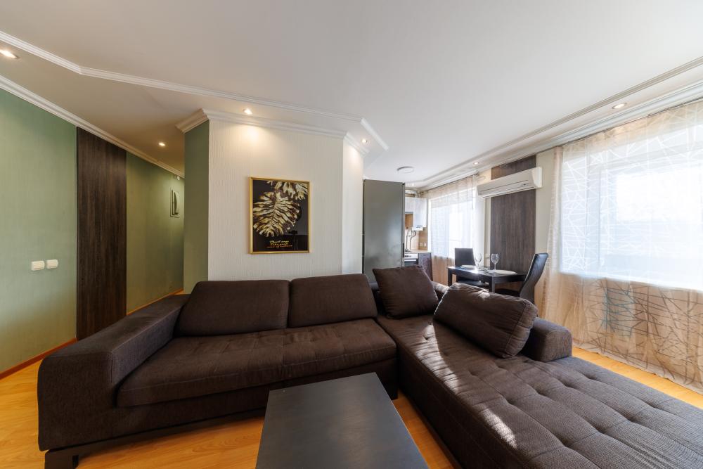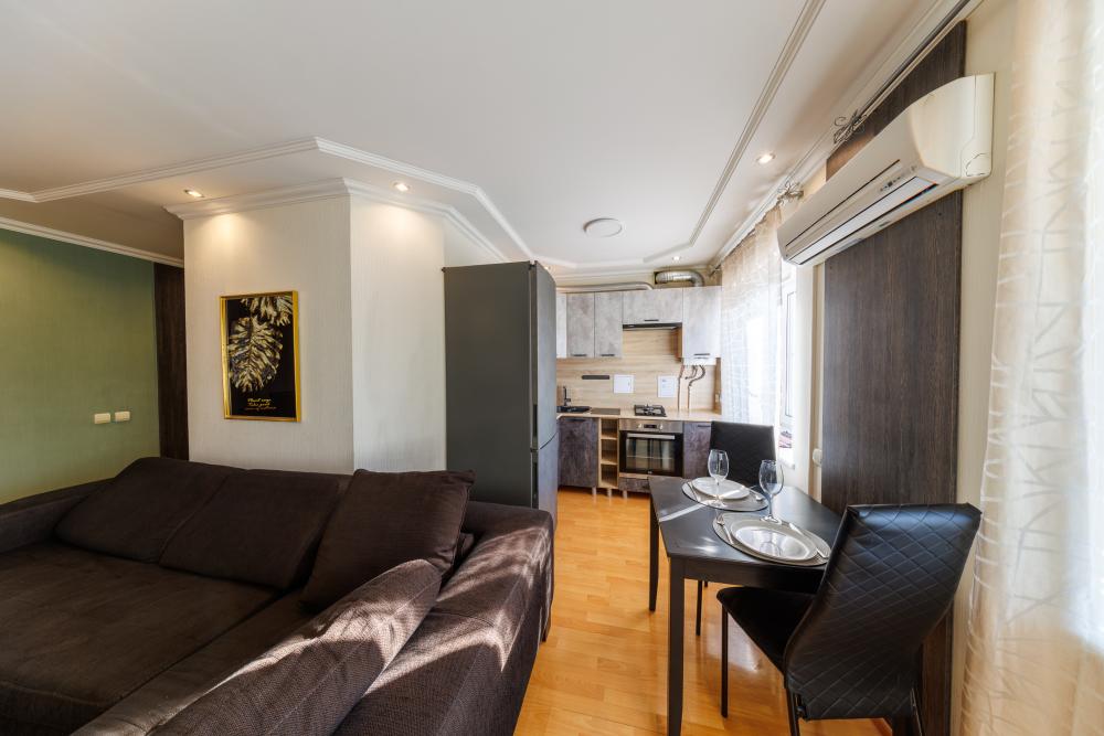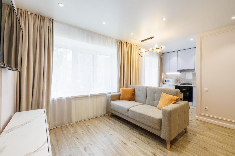 Однокомнатные апартаменты на улице Фрунзе. Для комфортного проживания гостей апартаменты оборудованы всем необходимым включая: фен, утюг, стиральная машина, чайник, микроволновка, плита, холодильник, телевизор, WI-FI, столовые приборы и базовая посуда, чай и кофе. Гостям предоставляются полотенца, гель для душа, свежее постельное белье и тапочки.