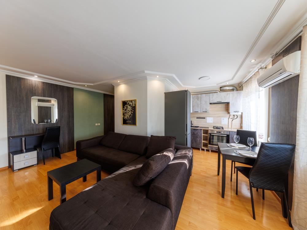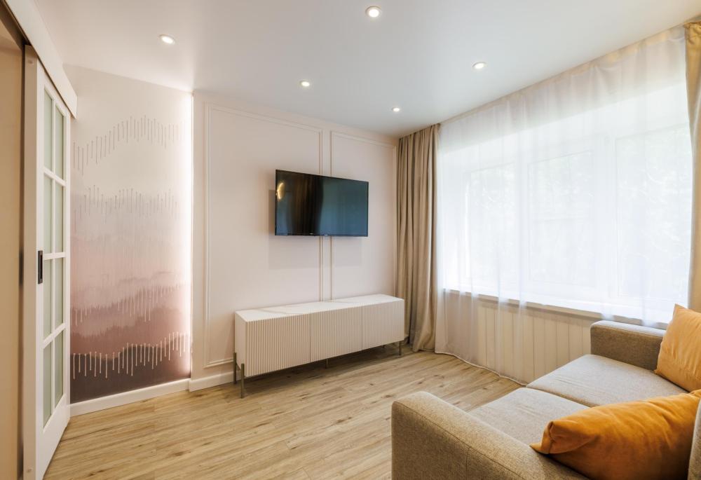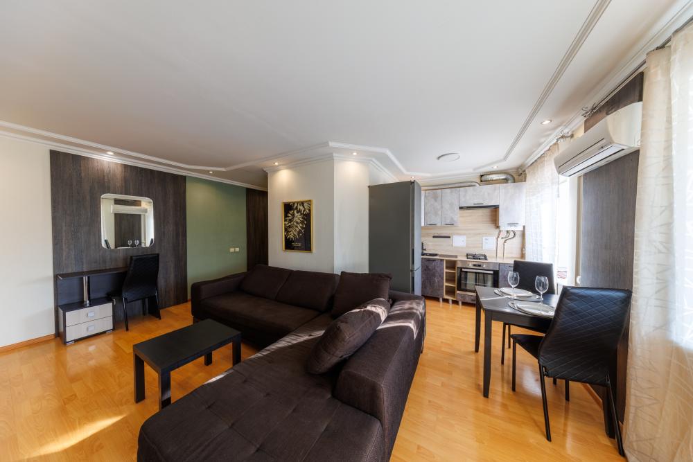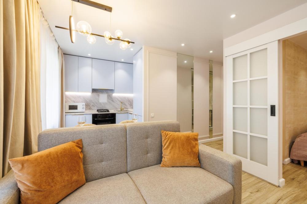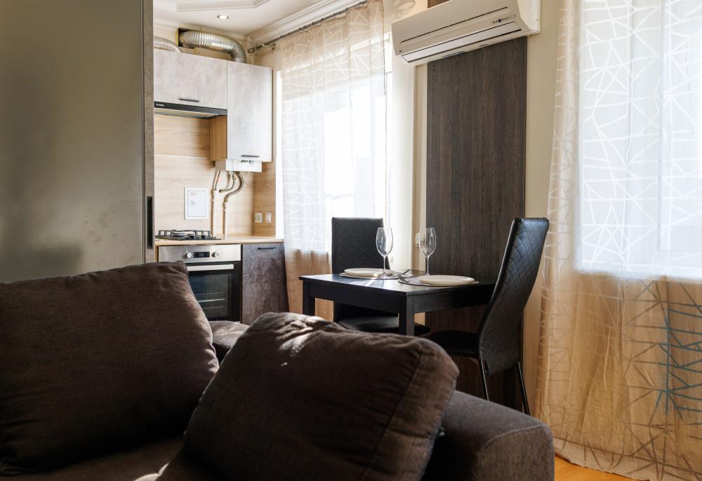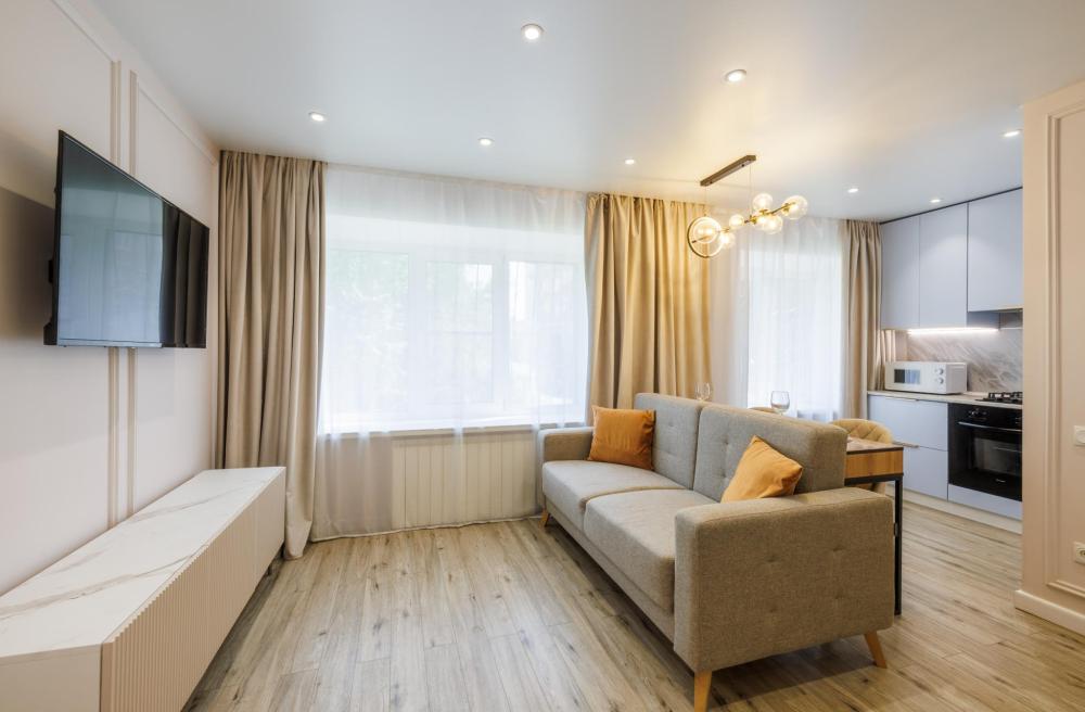 Однокомнатные апартаменты на улице Фрунзе. Для комфортного проживания гостей апартаменты оборудованы всем необходимым включая: фен, утюг, стиральная машина, чайник, микроволновка, плита, холодильник, телевизор, WI-FI, столовые приборы и базовая посуда, чай и кофе. Гостям предоставляются полотенца, гель для душа, свежее постельное белье и тапочки.