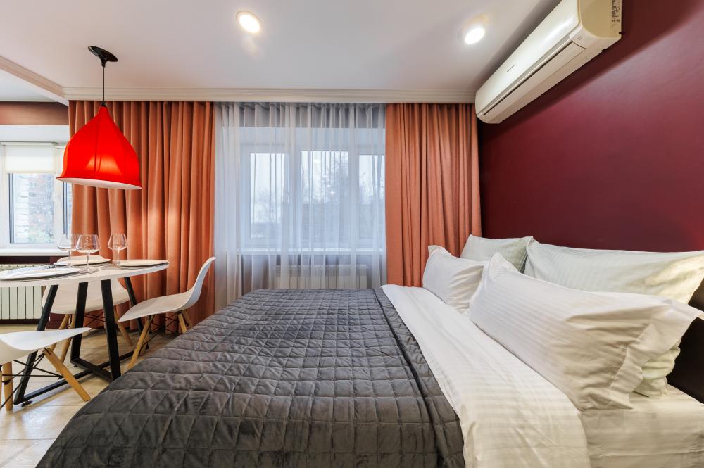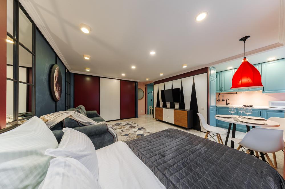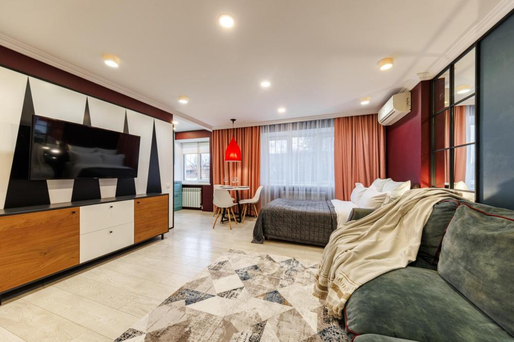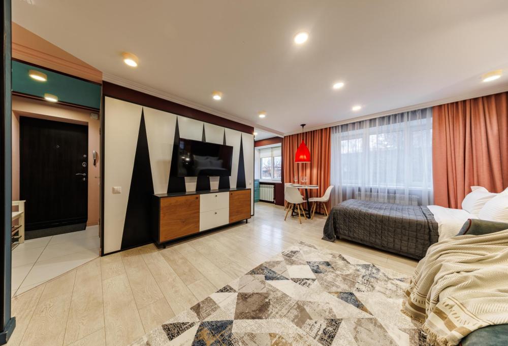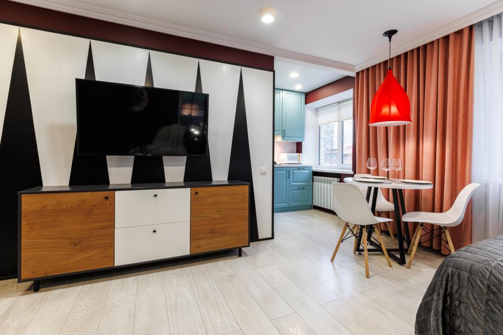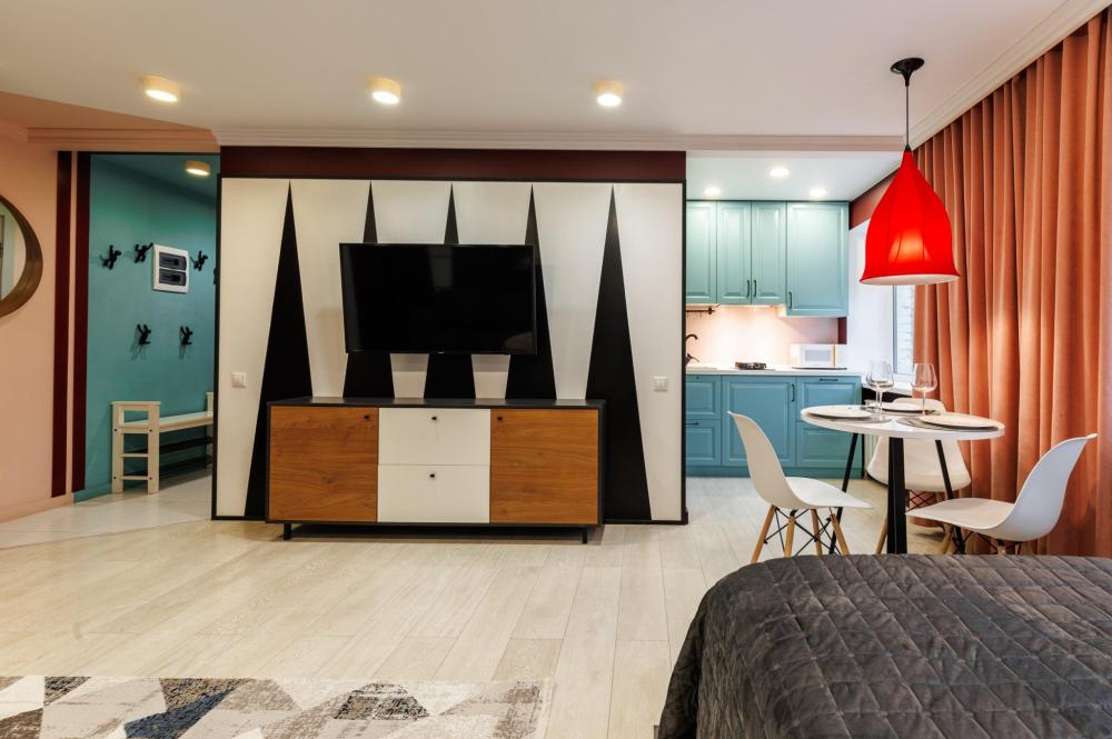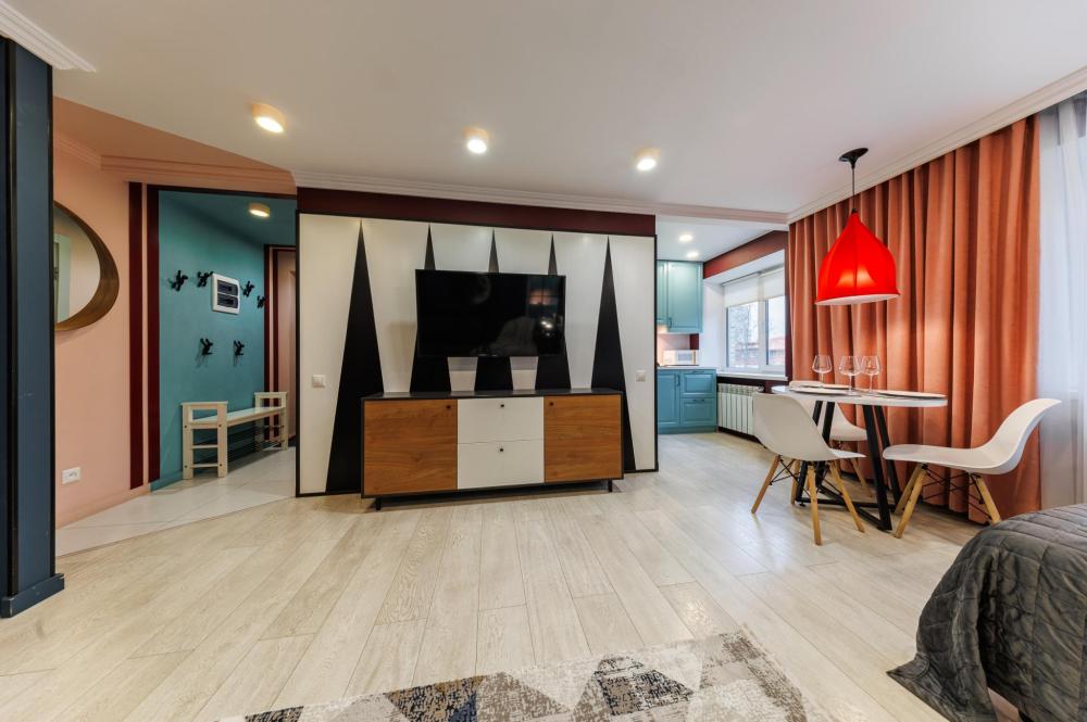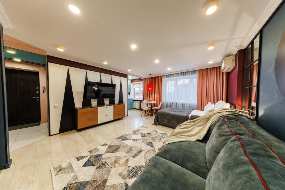Уютные апартаменты на улице Фрунзе. Для комфортного проживания гостей апартаменты оборудованы всем необходимым включая: фен, утюг, стиральная машина, чайник, микроволновка, плита, холодильник, телевизор, WI-FI, столовые приборы и базовая посуда, чай и кофе. Гостям предоставляются полотенца, гель для душа, свежее постельное белье и тапочки.