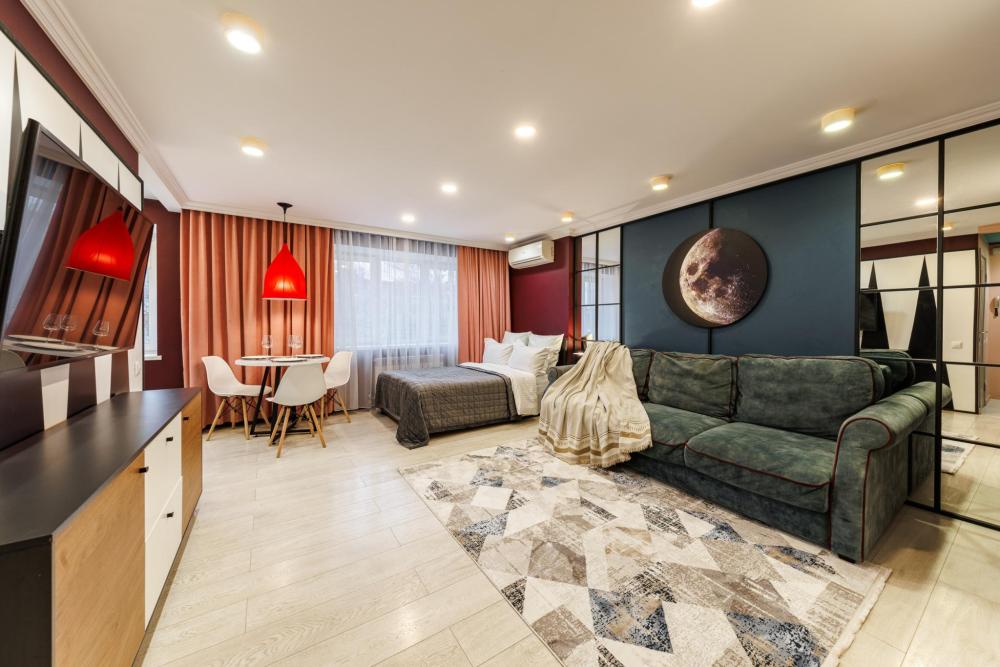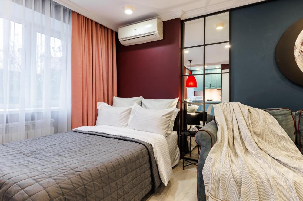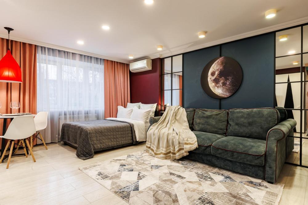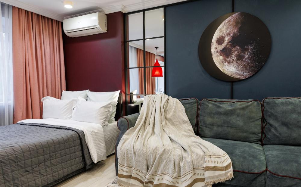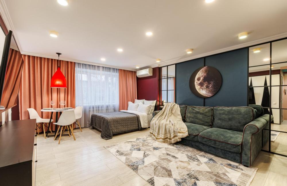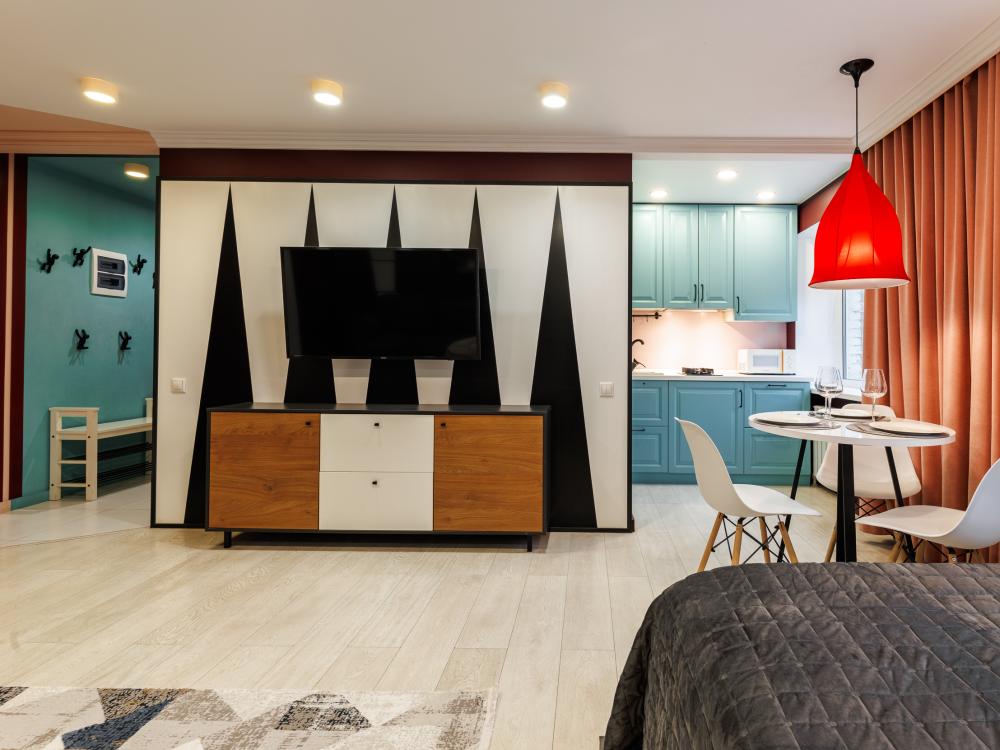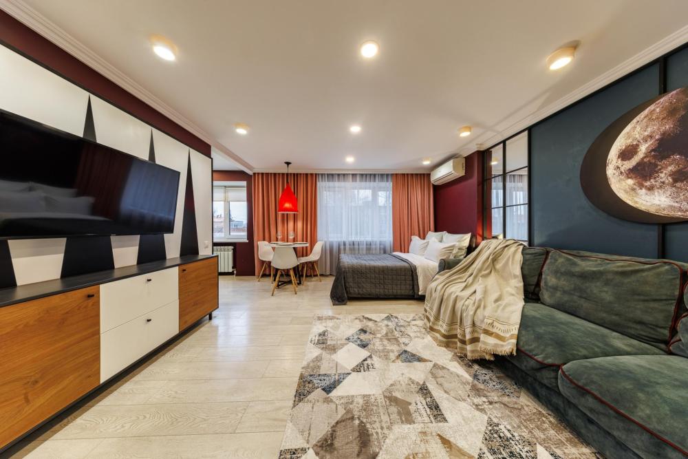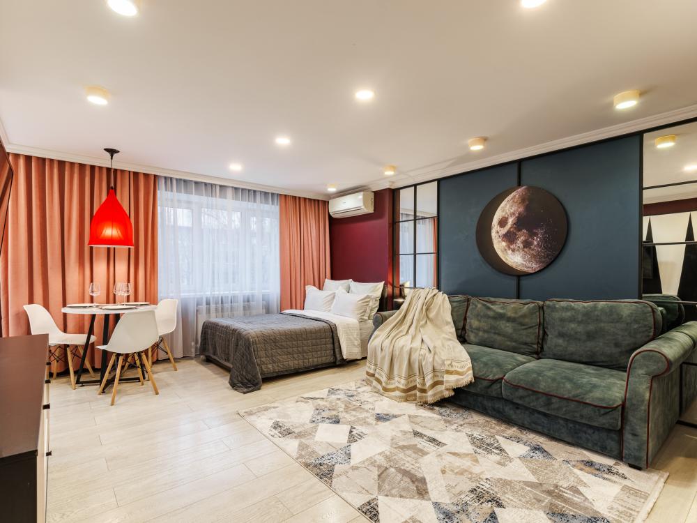 Уютные апартаменты на улице Фрунзе. Для комфортного проживания гостей апартаменты оборудованы всем необходимым включая: фен, утюг, стиральная машина, чайник, микроволновка, плита, холодильник, телевизор, WI-FI, столовые приборы и базовая посуда, чай и кофе. Гостям предоставляются полотенца, гель для душа, свежее постельное белье и тапочки.