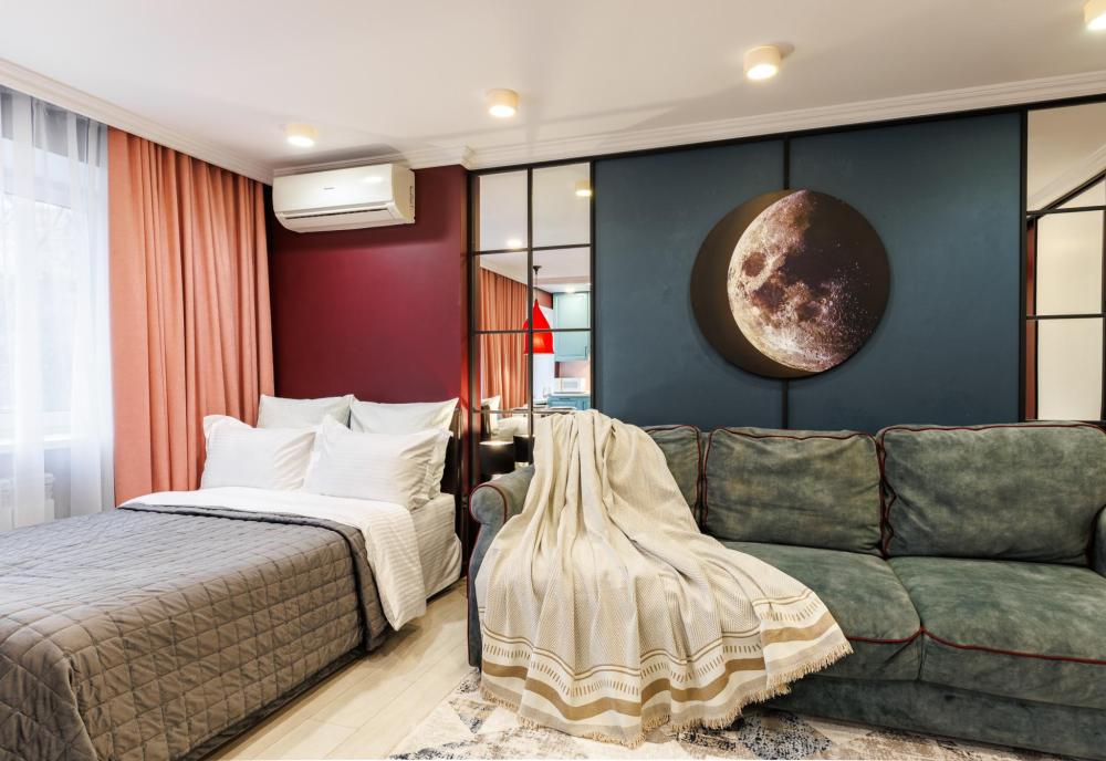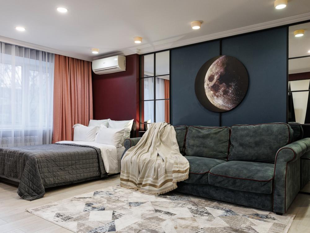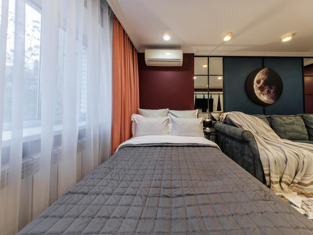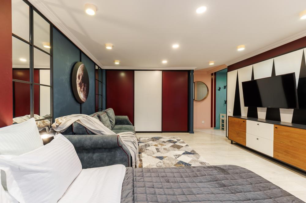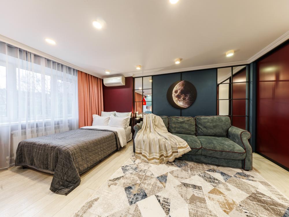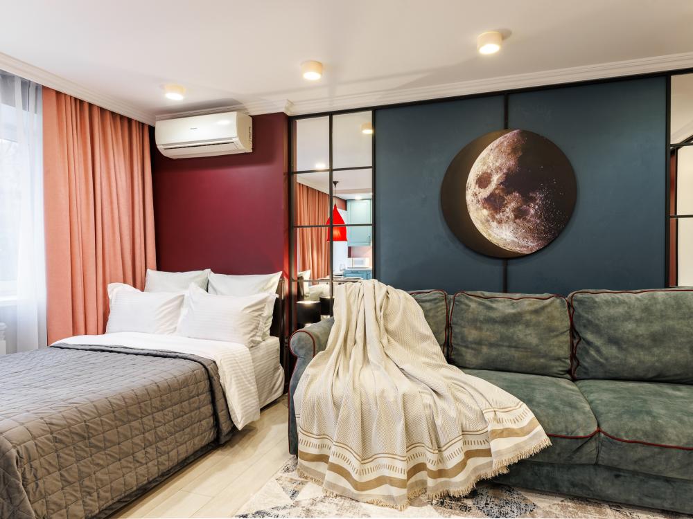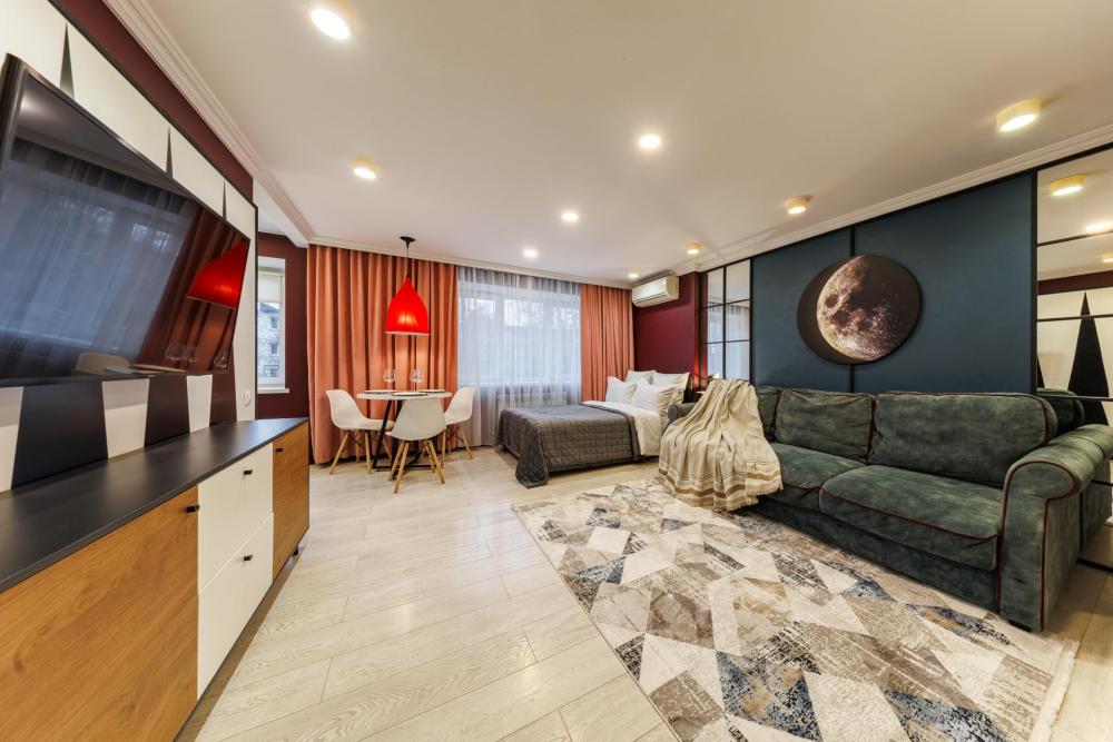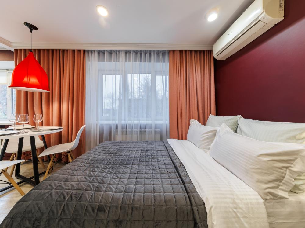 Уютные апартаменты на улице Фрунзе. Для комфортного проживания гостей апартаменты оборудованы всем необходимым включая: фен, утюг, стиральная машина, чайник, микроволновка, плита, холодильник, телевизор, WI-FI, столовые приборы и базовая посуда, чай и кофе. Гостям предоставляются полотенца, гель для душа, свежее постельное белье и тапочки.