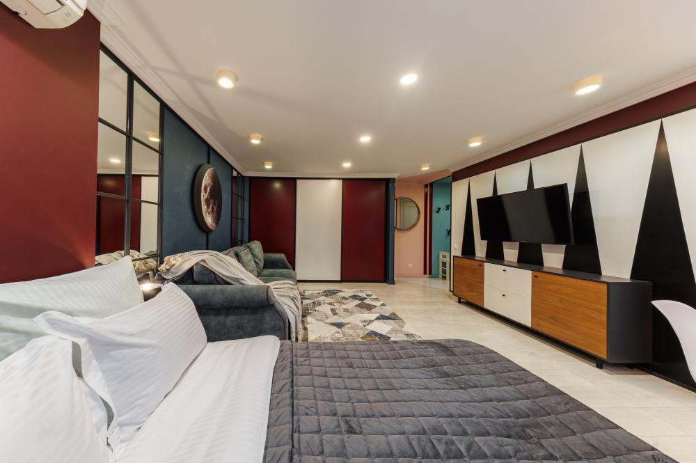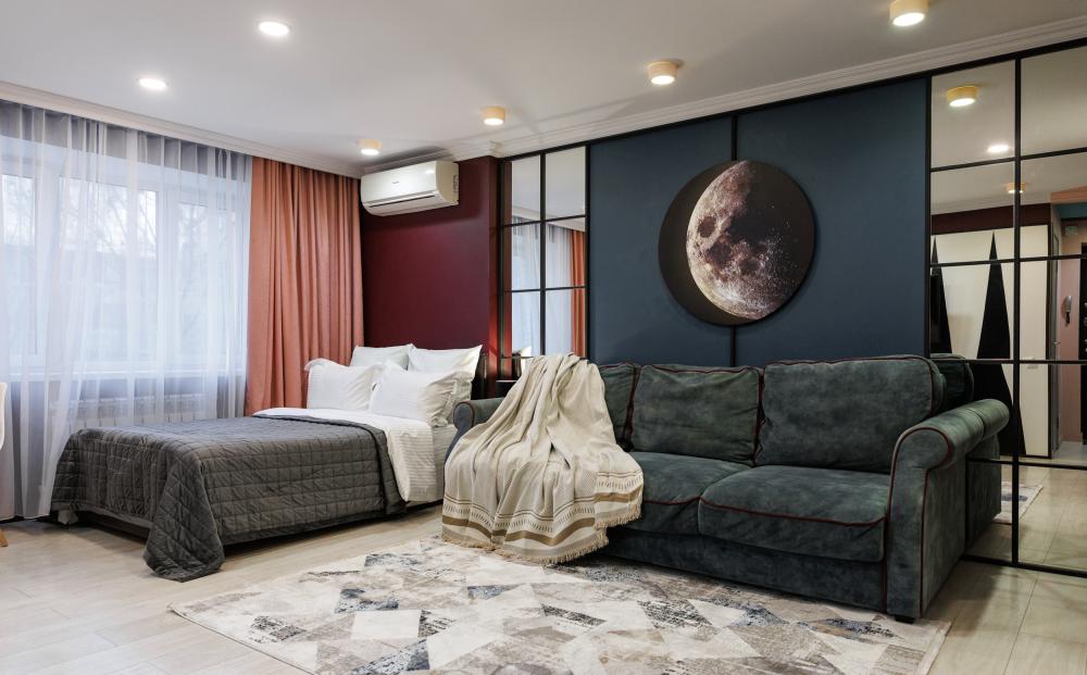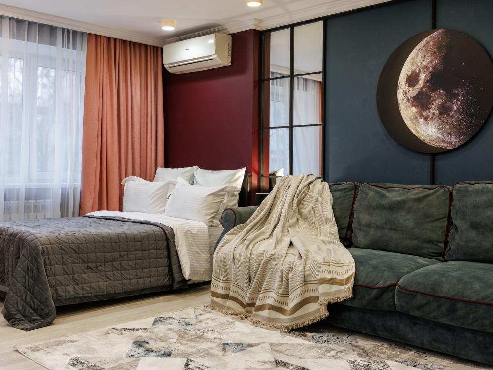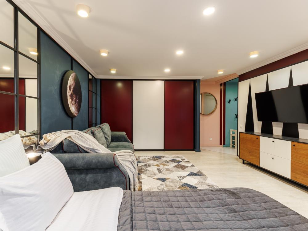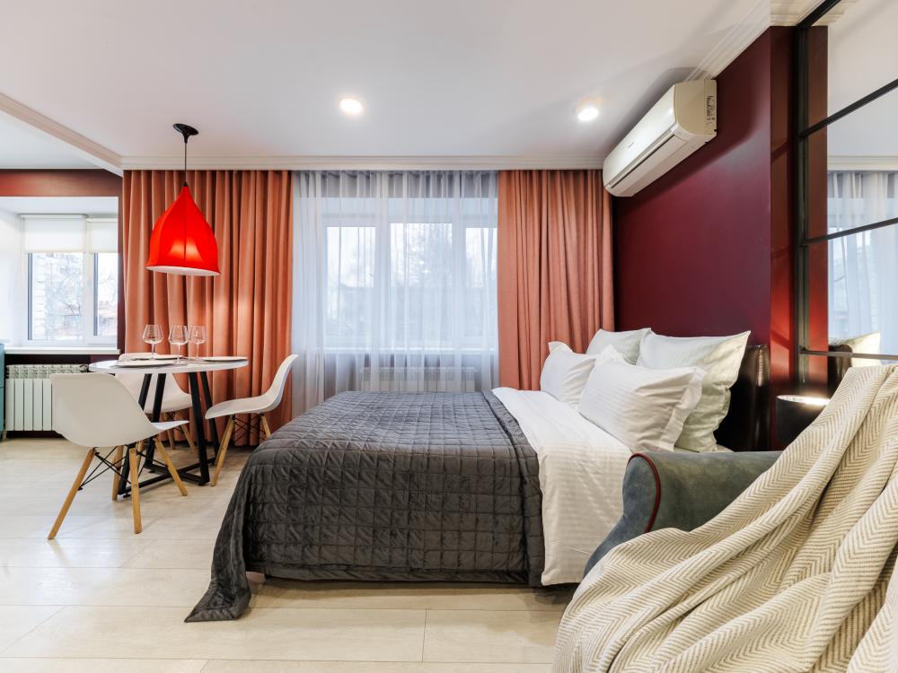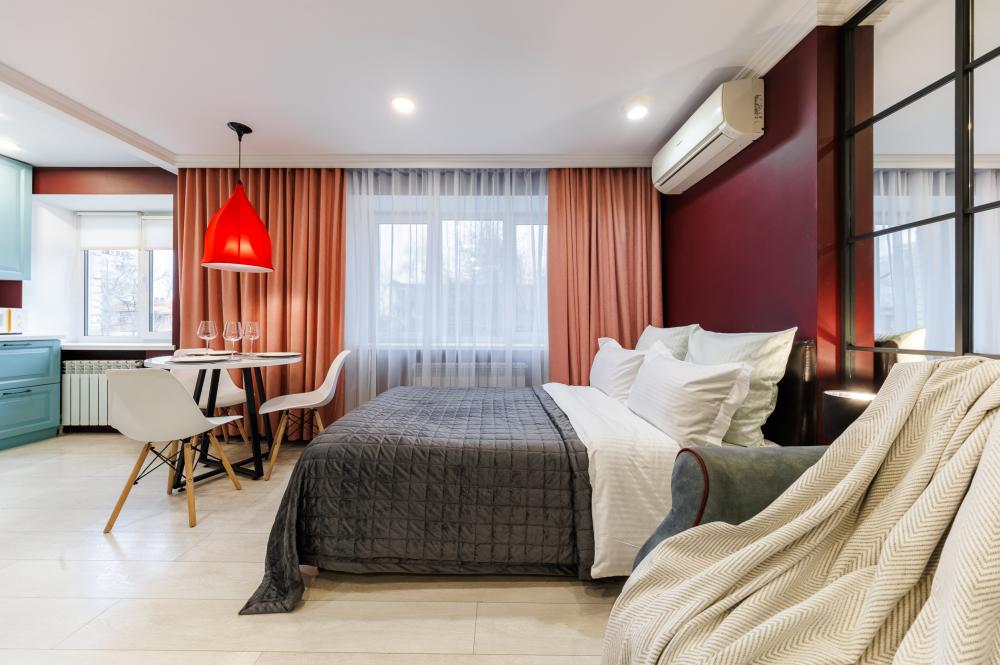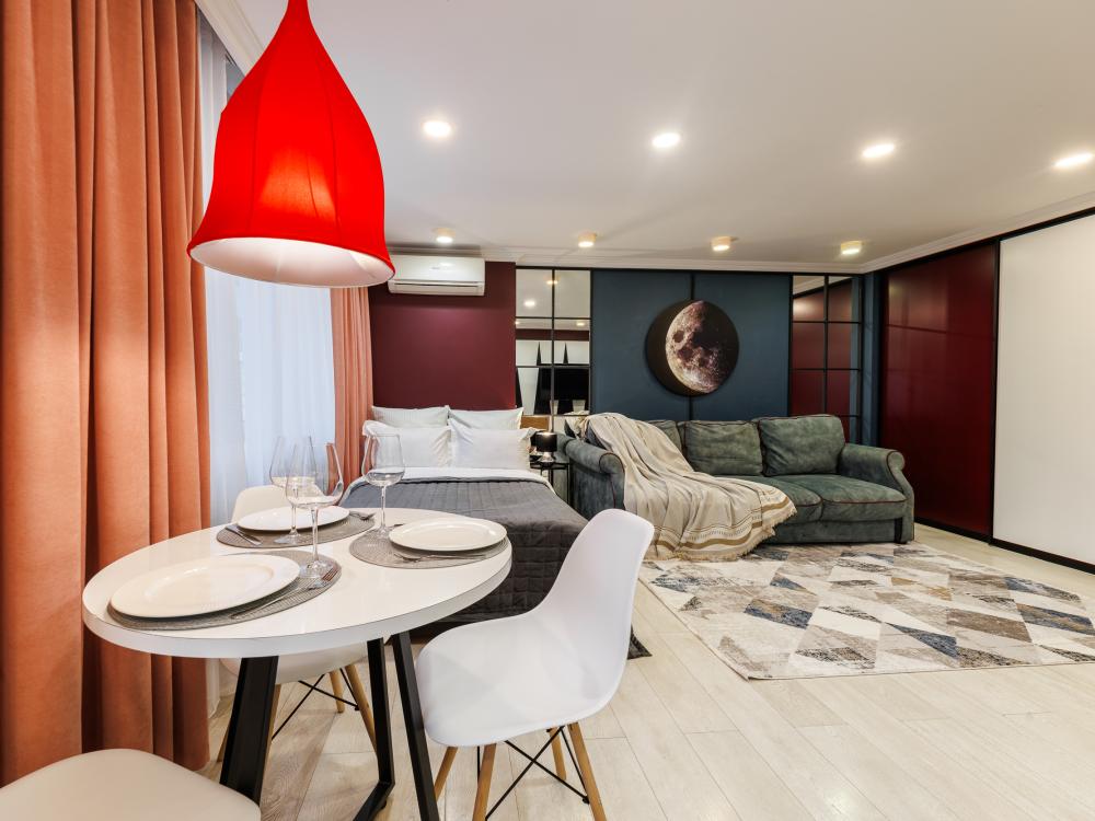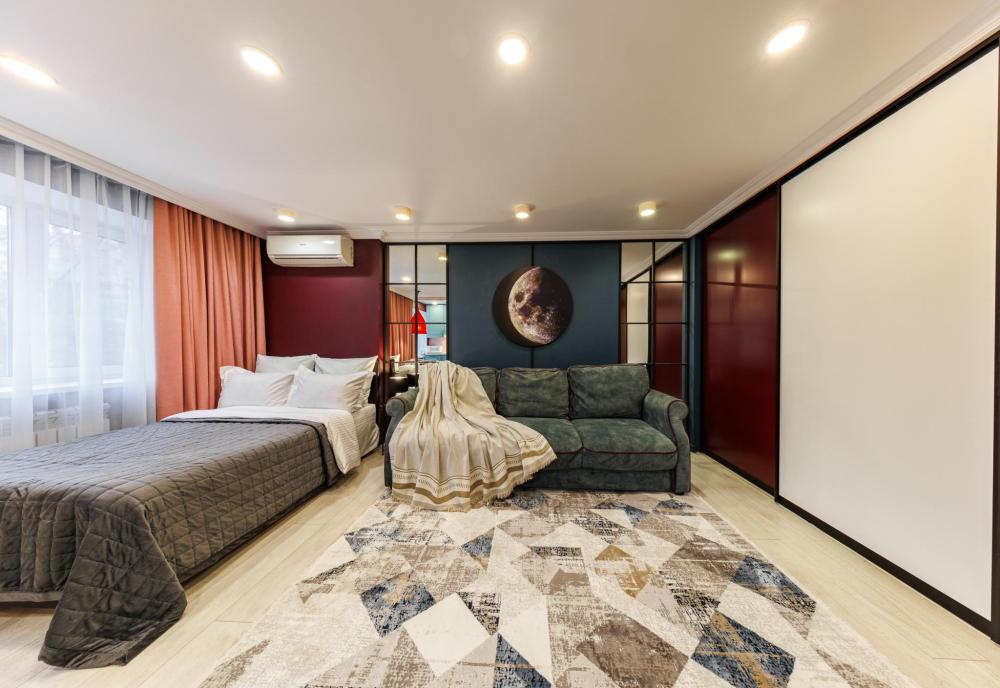 Уютные апартаменты на улице Фрунзе. Для комфортного проживания гостей апартаменты оборудованы всем необходимым включая: фен, утюг, стиральная машина, чайник, микроволновка, плита, холодильник, телевизор, WI-FI, столовые приборы и базовая посуда, чай и кофе. Гостям предоставляются полотенца, гель для душа, свежее постельное белье и тапочки.