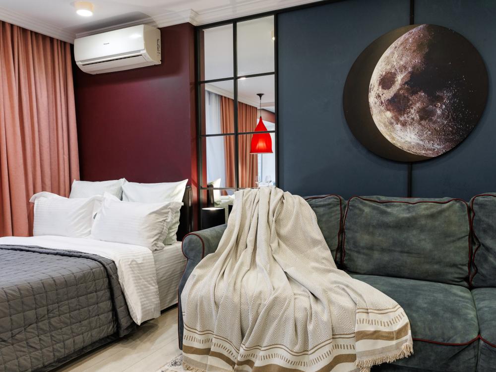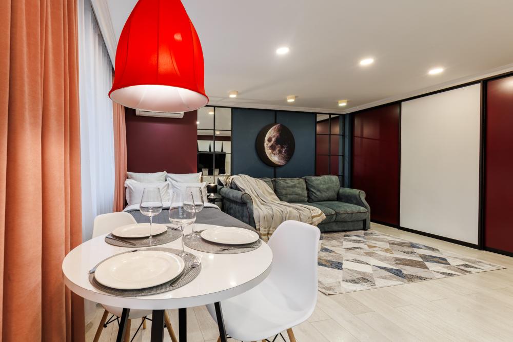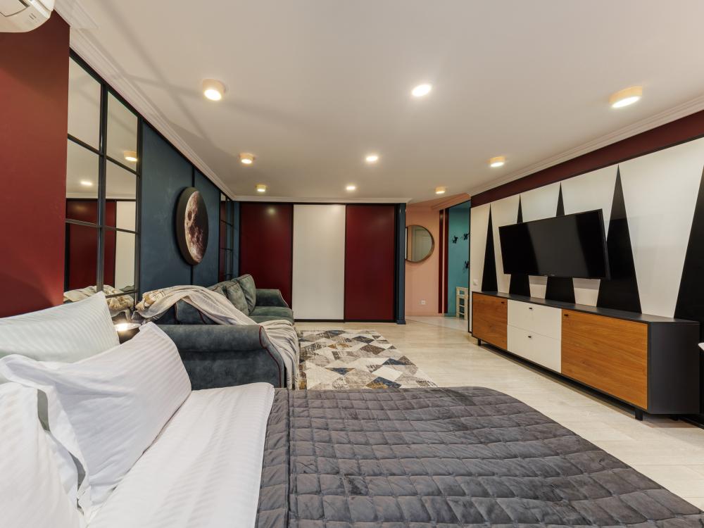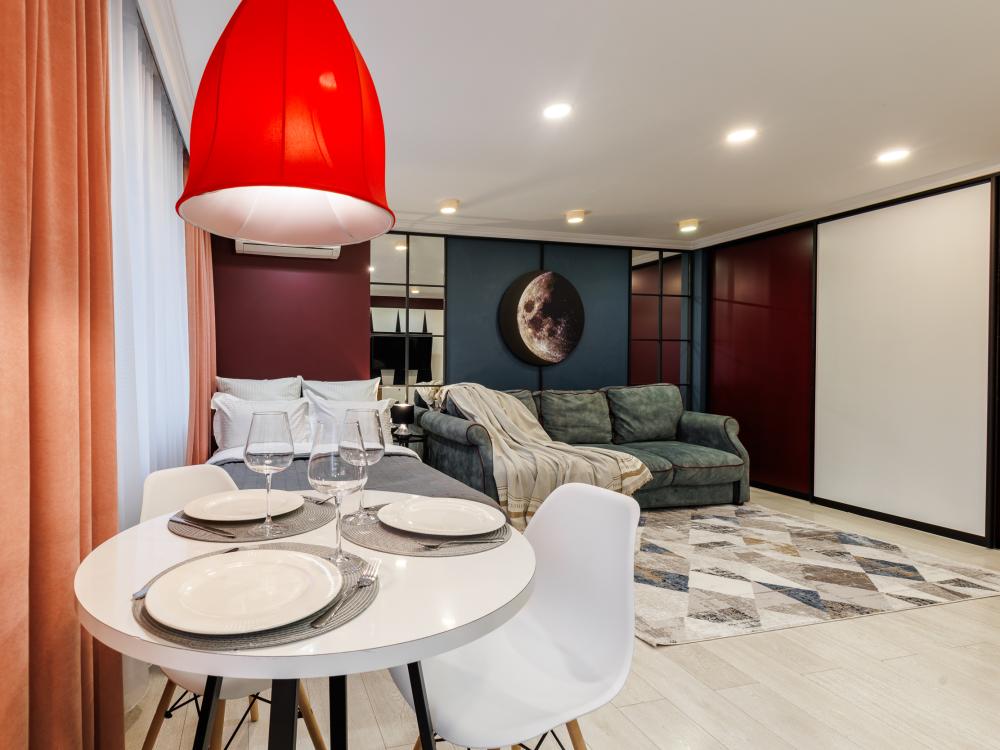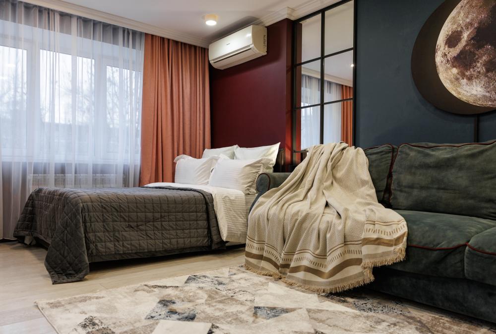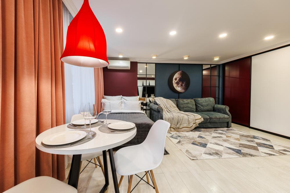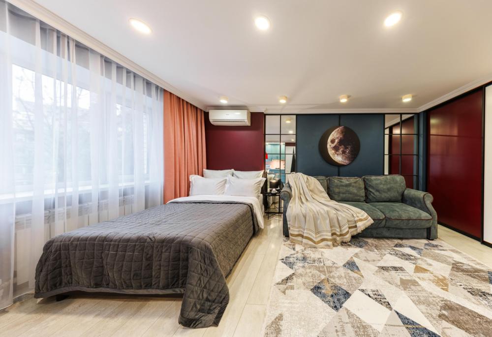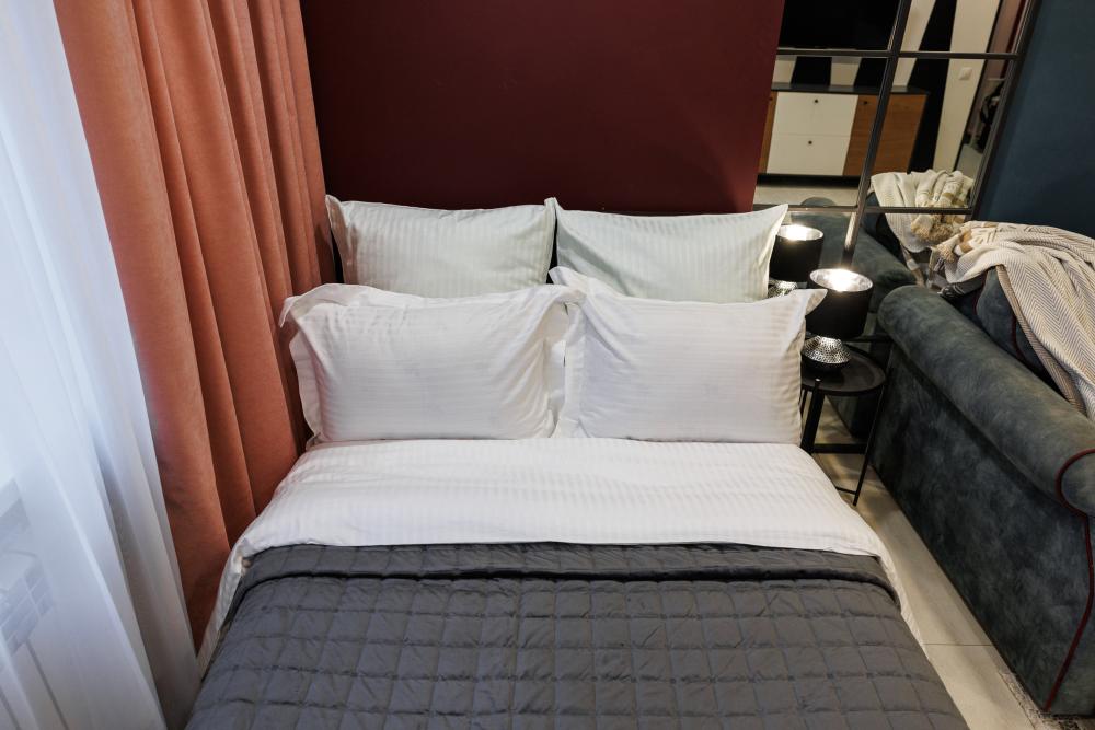 Уютные апартаменты на улице Фрунзе. Для комфортного проживания гостей апартаменты оборудованы всем необходимым включая: фен, утюг, стиральная машина, чайник, микроволновка, плита, холодильник, телевизор, WI-FI, столовые приборы и базовая посуда, чай и кофе. Гостям предоставляются полотенца, гель для душа, свежее постельное белье и тапочки.