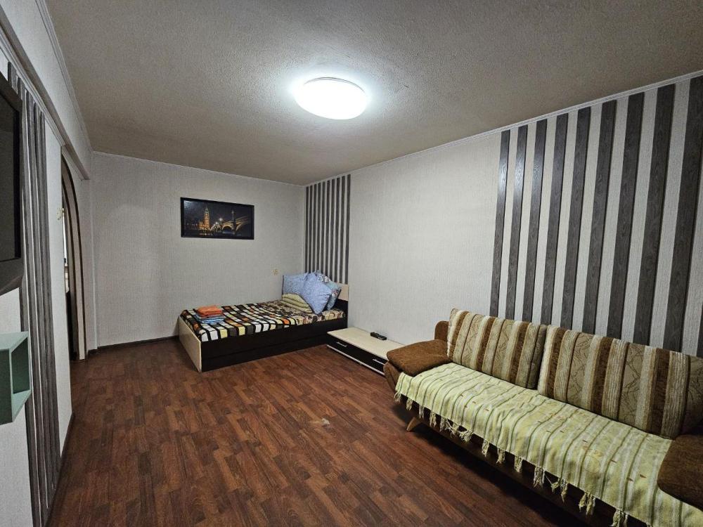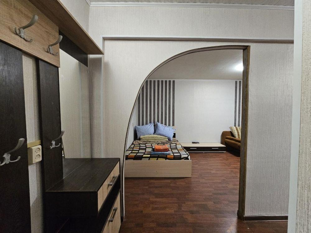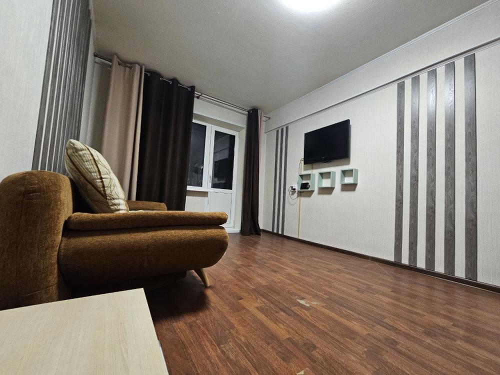 Однокомнатные апартаменты, оборудованные всем необходимым для комфортного проживания. В апартаментах: двуспальная кровать, диван, кухня, оборудованная необходимой техникой и посудой, стиральная машина, санузел с ванной.