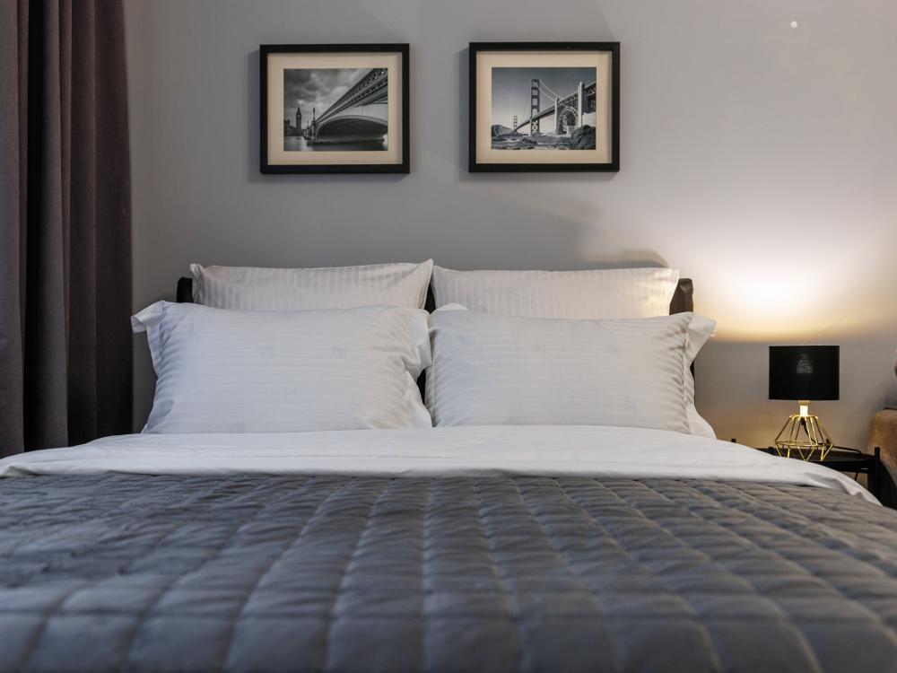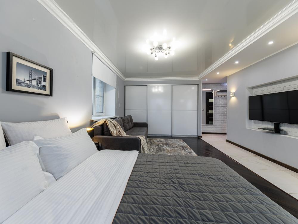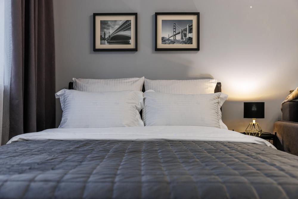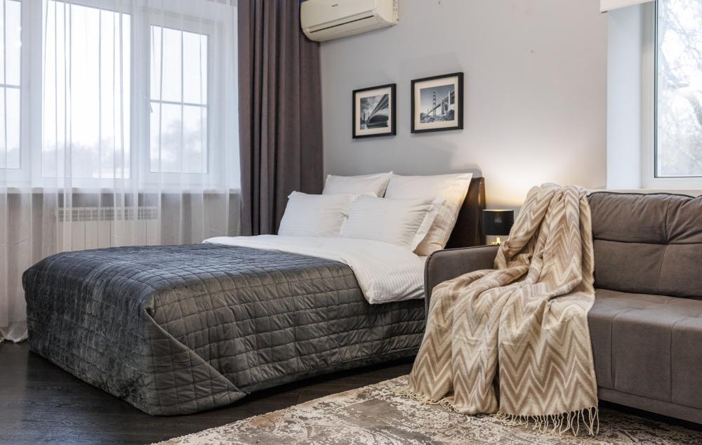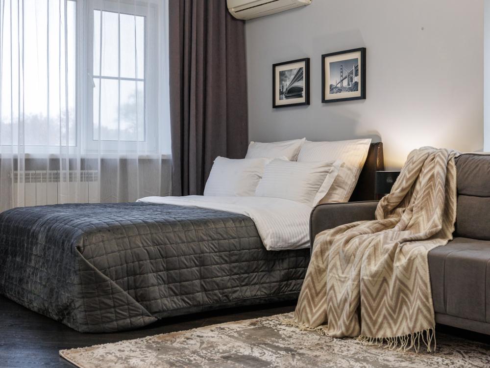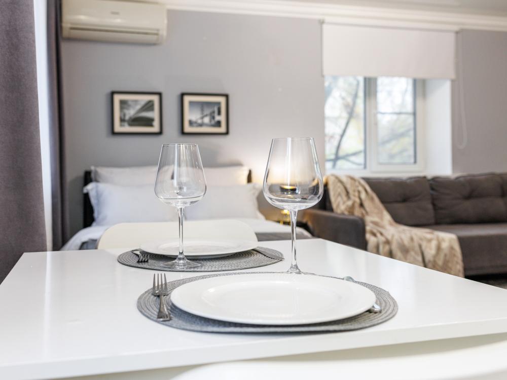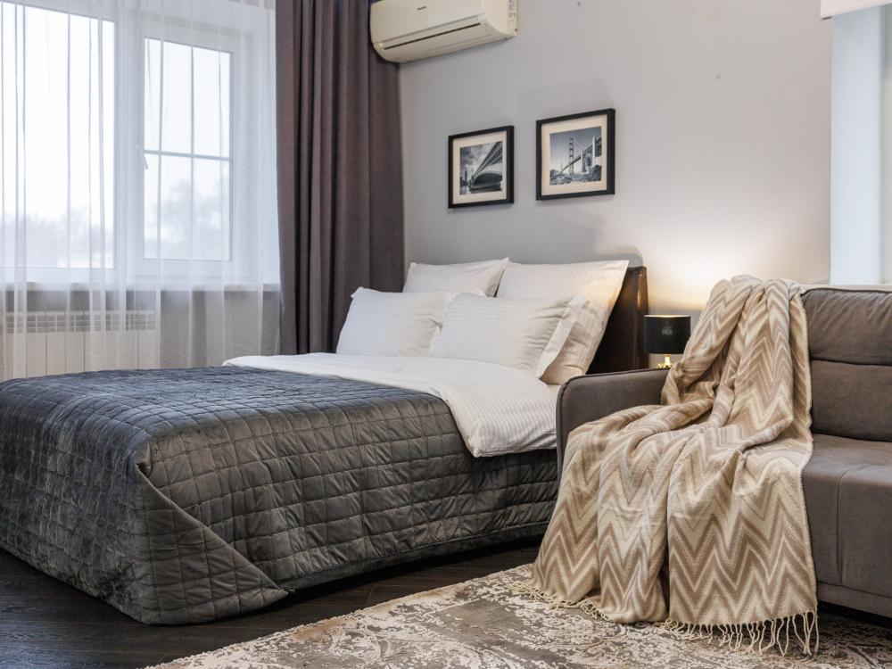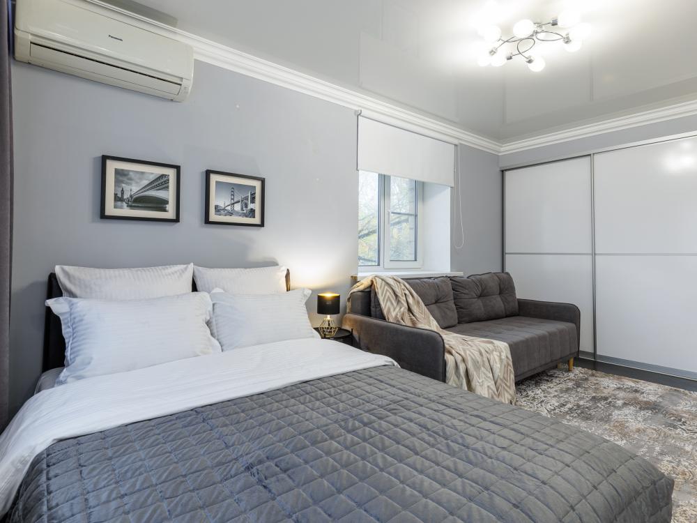Уютные апартаменты на улице Фрунзе. Для комфортного проживания гостей апартаменты оборудованы всем необходимым включая: фен, утюг, стиральная машина, чайник, микроволновка, плита, холодильник, телевизор, WI-FI, столовые приборы и базовая посуда, чай и кофе. Гостям предоставляются полотенца, гель для душа, свежее постельное белье и тапочки.