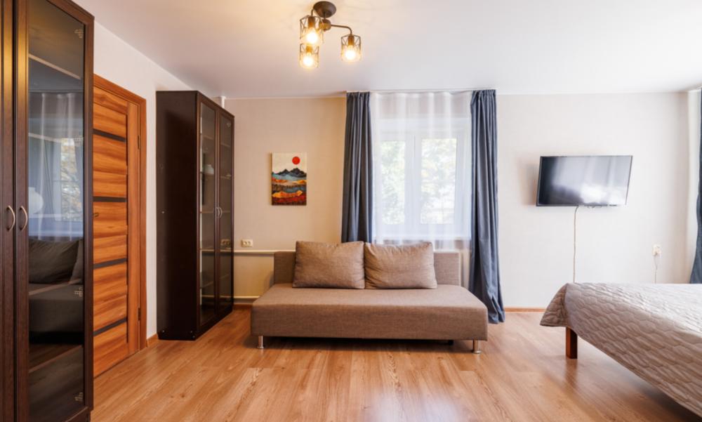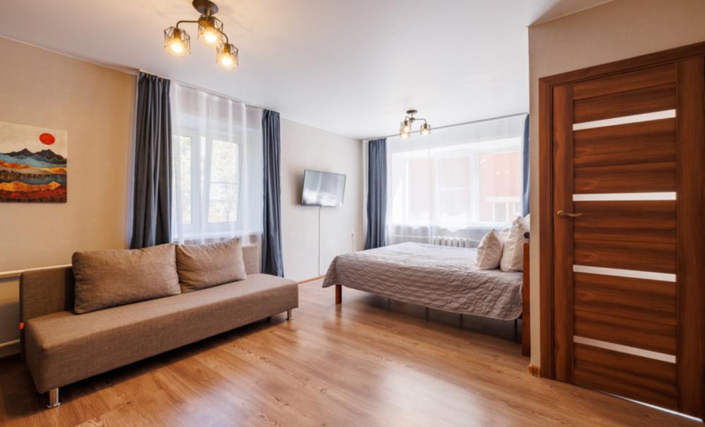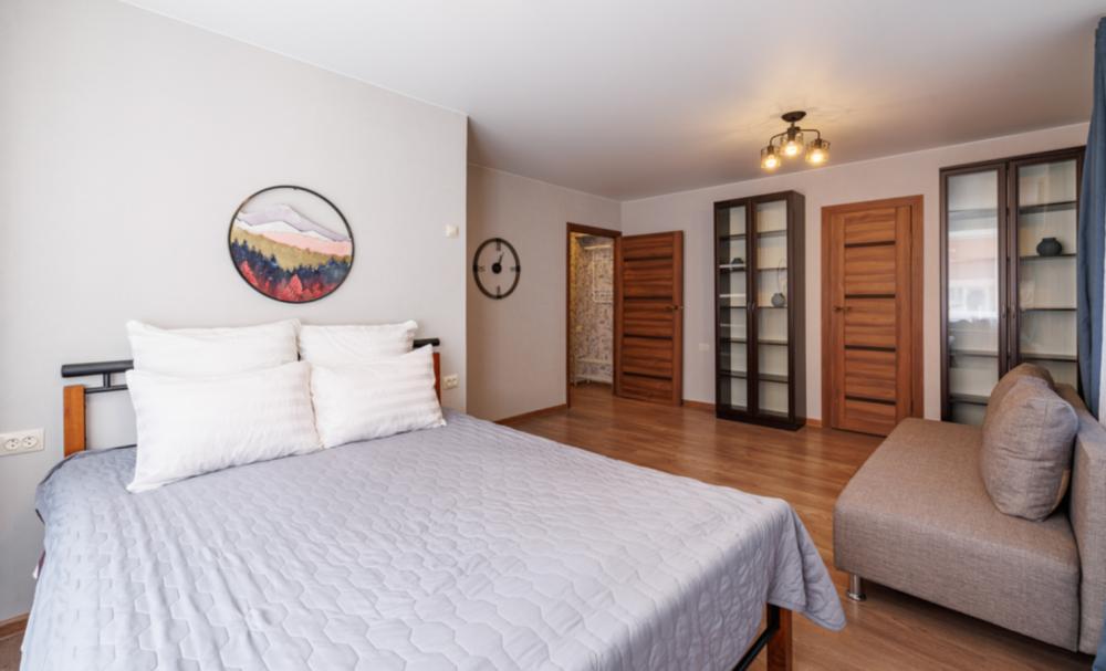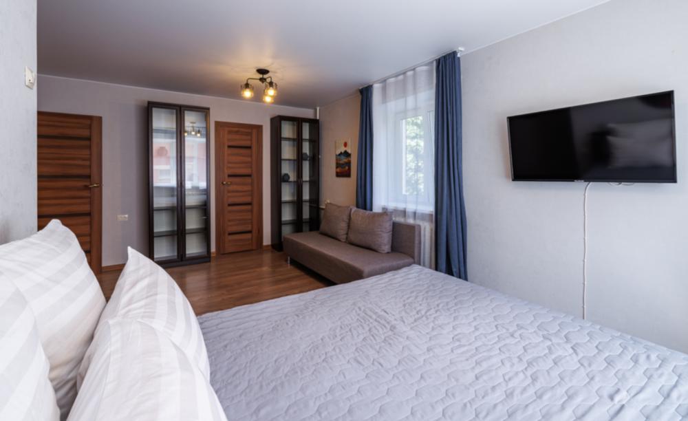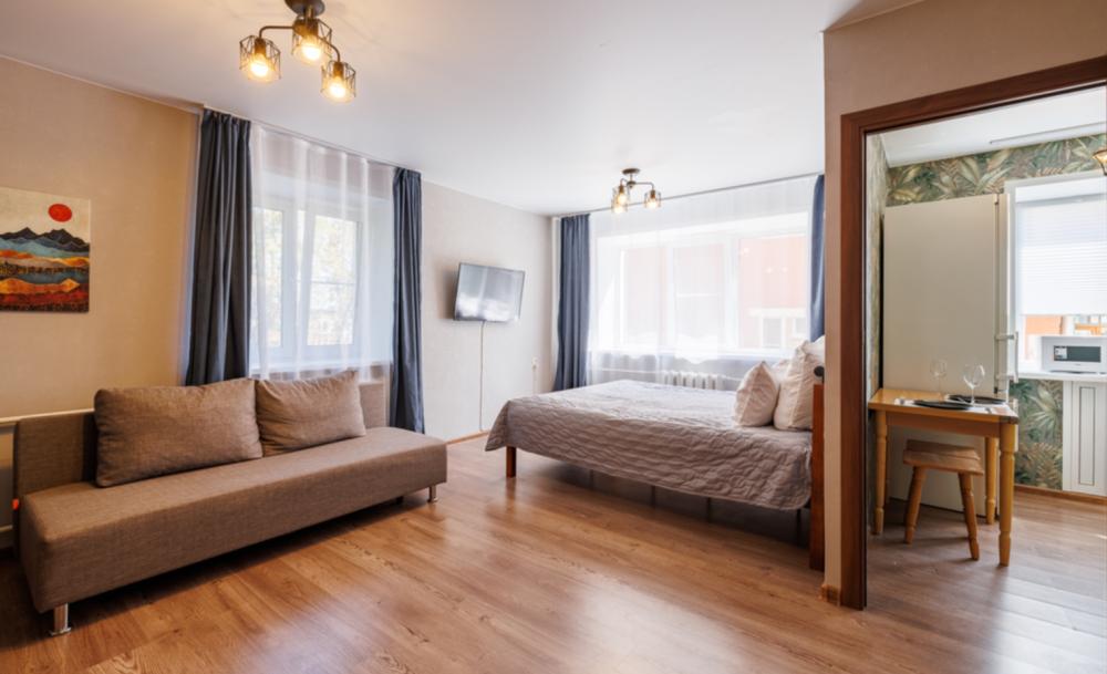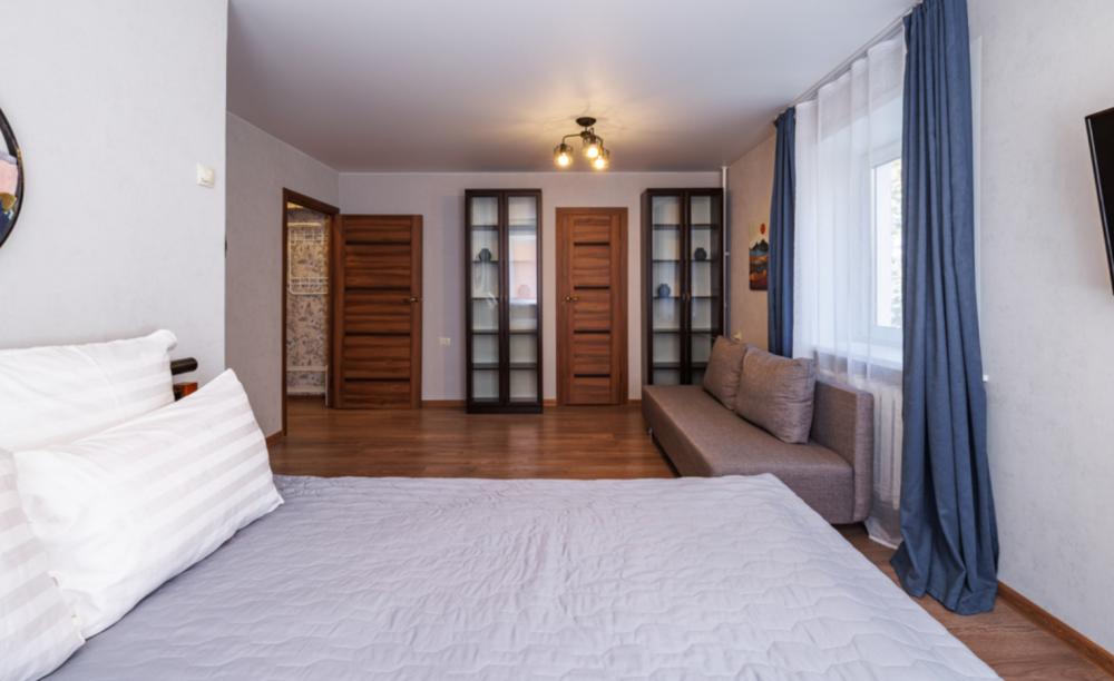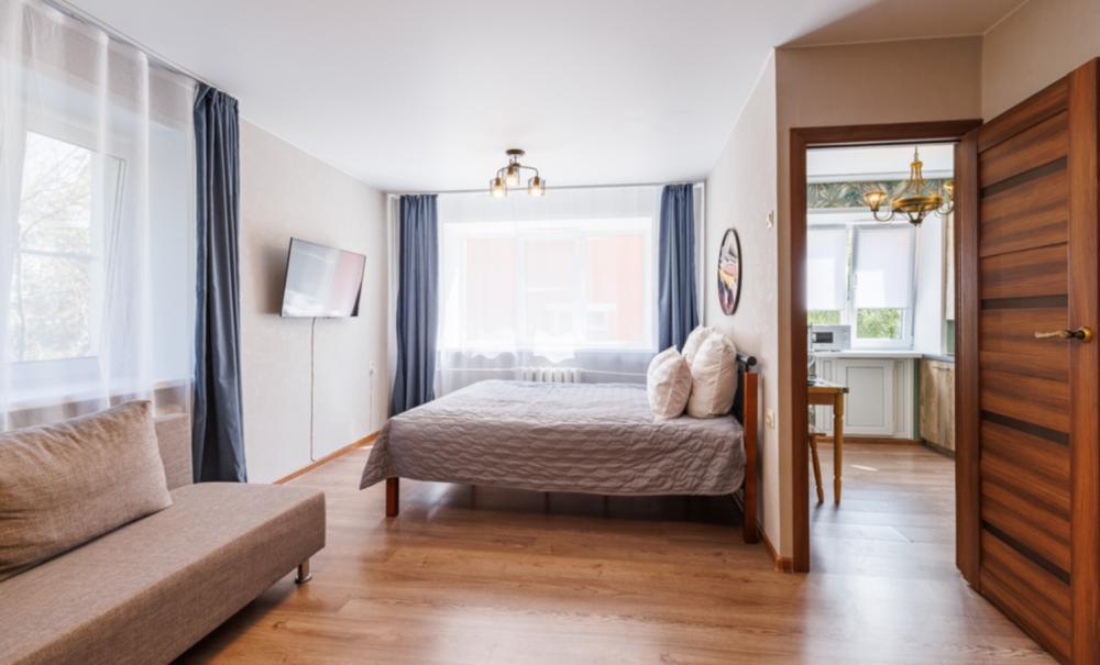 Уютные однокомнатные апартаменты на улице Николая Руднева. Для размещения до 4-х гостей. Для комфортного проживания гостей апартаменты оборудованы всем необходимым включая: фен, утюг, стиральная машина, чайник, микроволновка, плита, холодильник, телевизор, WI-FI, столовые приборы и базовая посуда, чай и кофе. Гостям предоставляются полотенца, гель для душа, свежее постельное белье и тапочки. Кровати: 1 двуспальная, 1 диван-кровать, общая площадь: 33 м², этаж: 4 из 5.