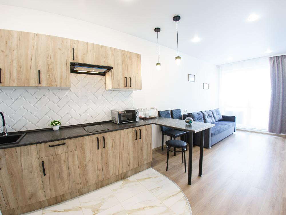 Уютные однокомнатные апартамкнты с кухней- гостиной на ул.Академика Насоновой. В квартире имеется всё необходимое для комфортного проживания гостей: двуспальная кровать и раскладной диван (с комфортом могут разместиться до 3 гостей), бытовая техника: фен,утюг, стиральная машина, электрический чайник, микроволновая печь и многое другое, Wi-fi и ЖК-телевизор, белоснежное постельное бельё и махровые полотенца 2-х видов(для тела и для лица), минимальный набор ванных принадлежностей, который включает в себя: гель для душа,мыло и одноразовые тапочки, посуда и столовые принадлежности.