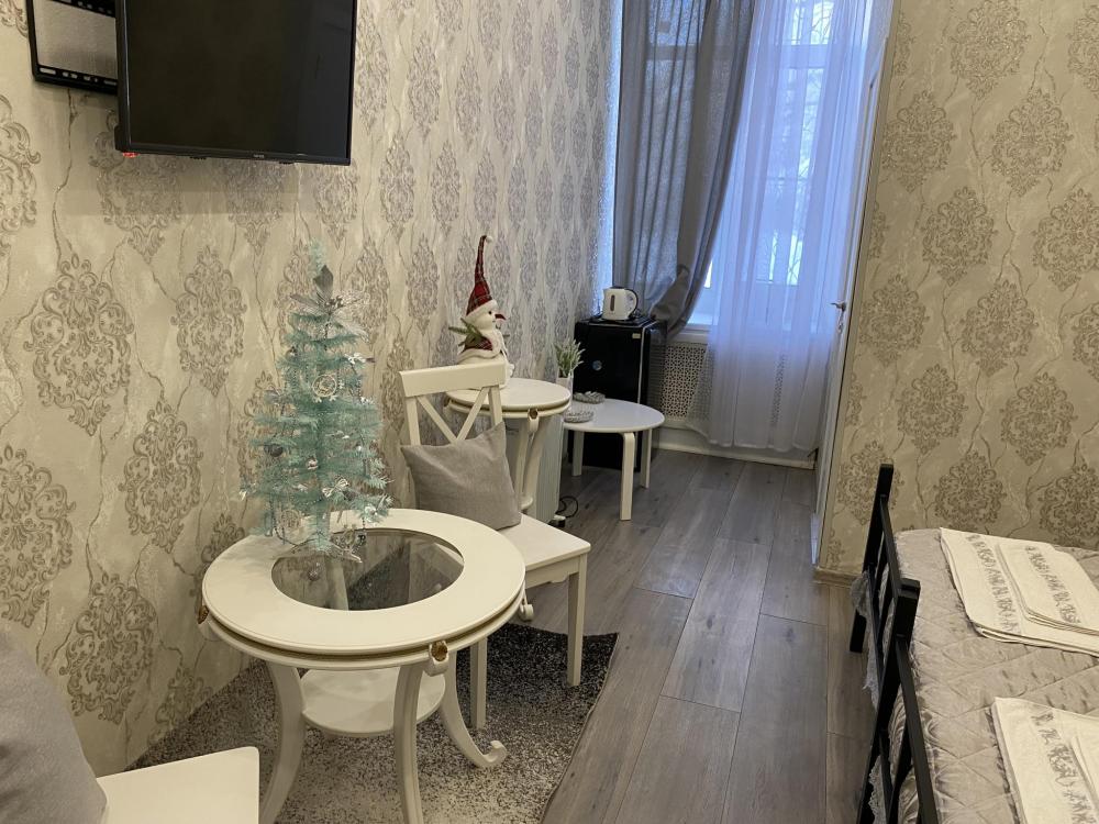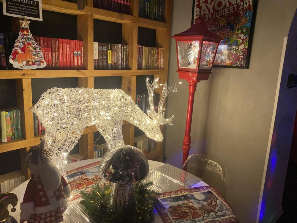 Просторный светлый номер для проживания любых категорий гостей. Его дизайн состоит из множества книг, которые раскрыты на потолке комнаты. Статуэтки выполнены в виде читающего человека. Оттенки комнаты тёплые и светлые. Приятно будет почитать на ночь красивый роман или захватывающий детектив при приглушённом свете торшера, тем более в холле имеется большая библиотека для наших гостей. В номере имеется две односпальные кровати и одна двухъярусная. Номер состоит из стола, двух стульев, двух шкафов, двух журнальных столиков, светильника, прикроватные коврики, телевизор ,WI-FI.