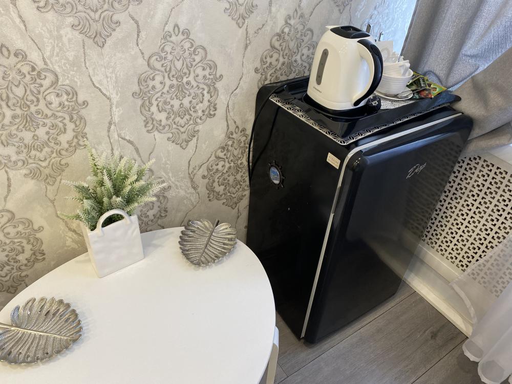 Просторный светлый номер для пары из двух человек. Номер ТВИН - двухместный номер. Светло серый с чёрным декором. В номере две односпальные кровати,которые можно разъединить по желанию гостей. В номере имеется прикроватные тумбочки с дизайнерскими ночничками, пуфики, столик, шкаф, холодильник, стулья, телевизор, часы. В душевой комнате имеется всё необходимое для гигиены. Всегда в стоимость входят: гели,шампуни, зубные и бритвенные наборы, шапочка для душа, фен, тапочки.