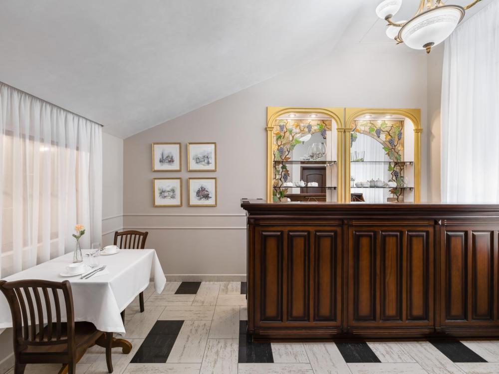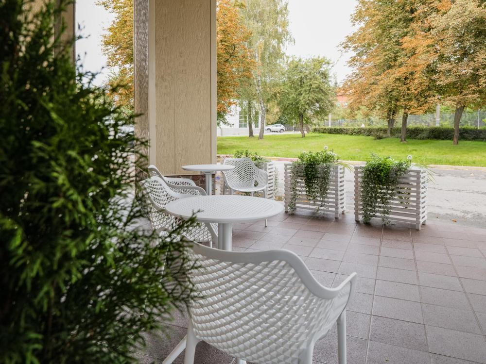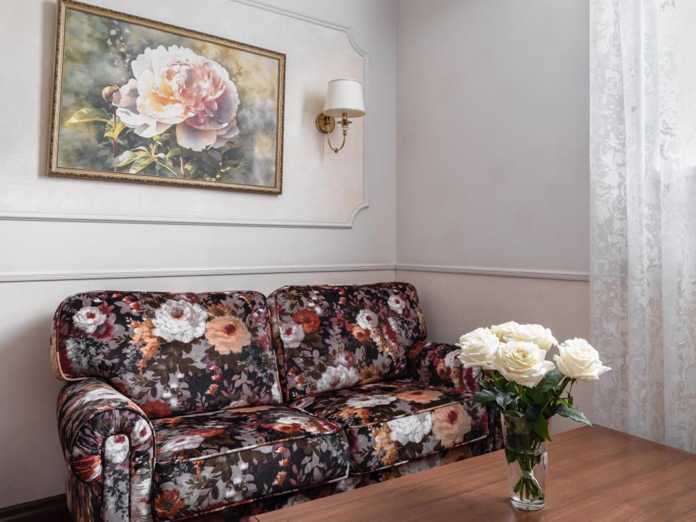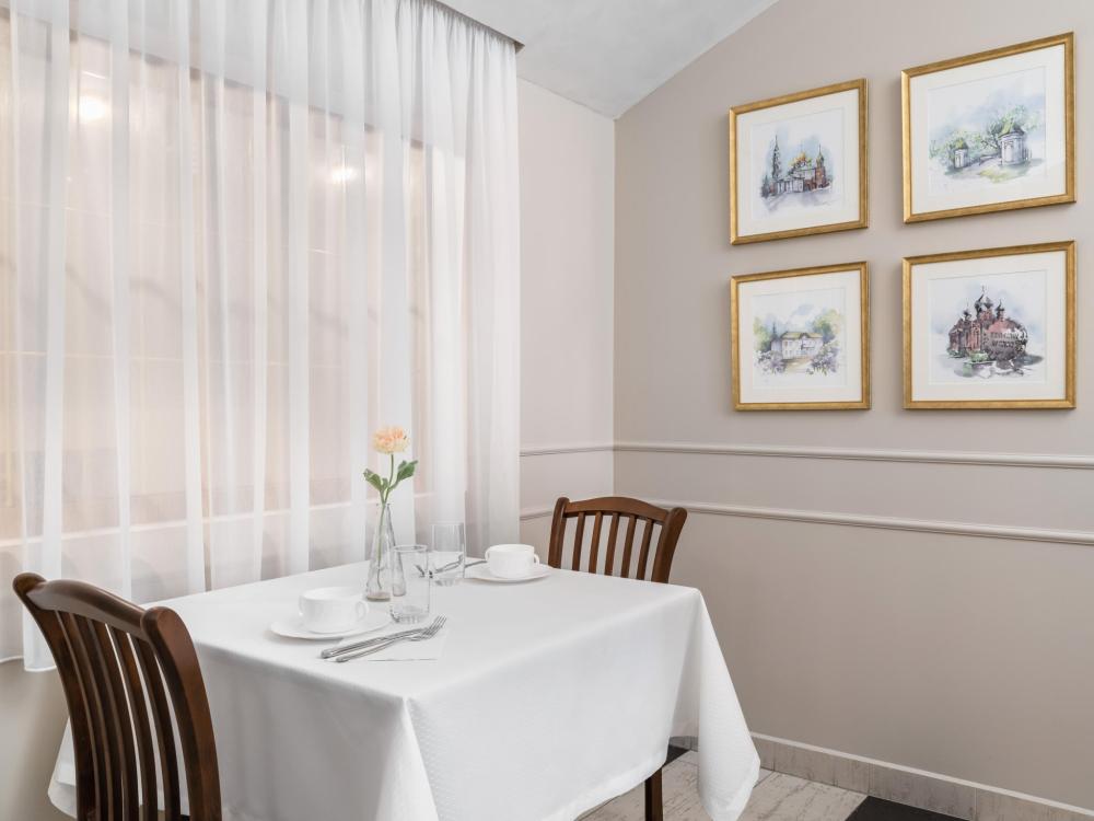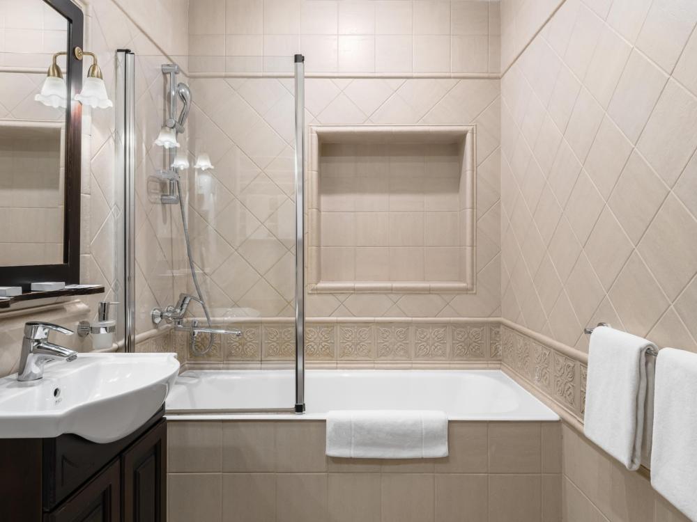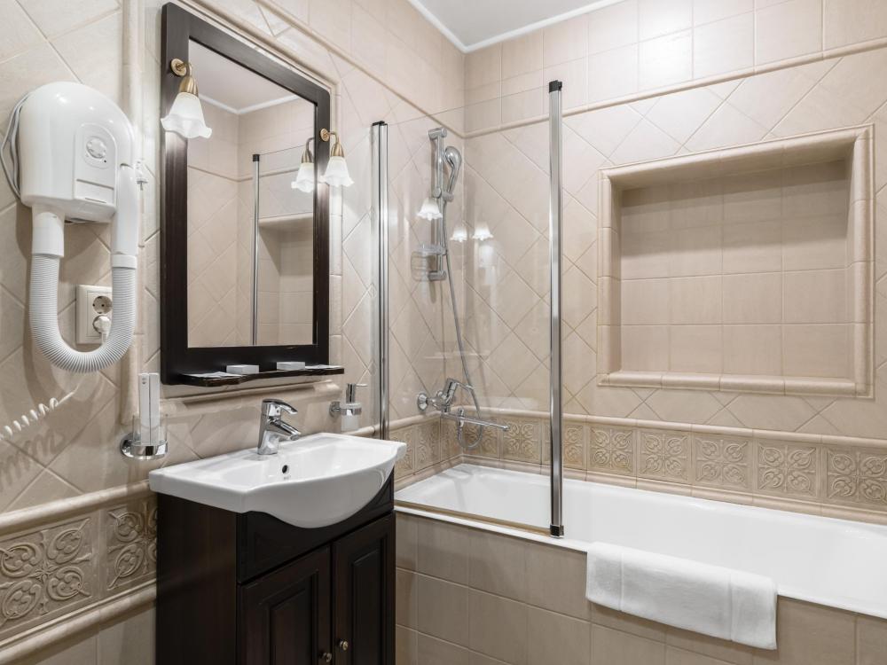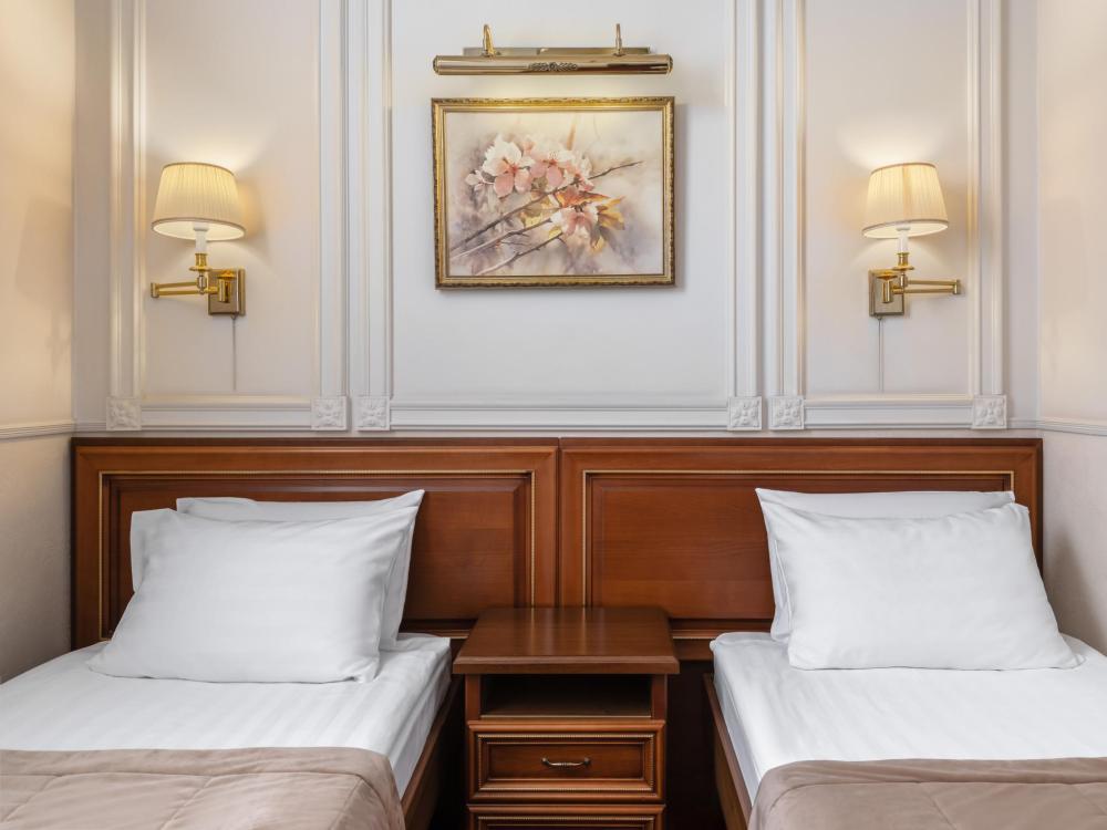 Двухкомнатный номер с двумя односпальными кроватями, ширина каждой - 90 см. В номере есть Wi-Fi, телевидение, кондиционер, мини-холодильник, фен, косметические принадлежности, тапочки.