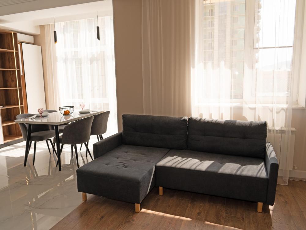 Просторная квартира студия, где вы найдете уютную гостиную с диваном и обеденной зоной, отдельную спальню с двуспальной кроватью. До моря — 10 минут пешком Прекрасная набережная с аллеей для вечерних прогулок и посиделок у моря Подойдёт как для отдыха, так и для рабочих...