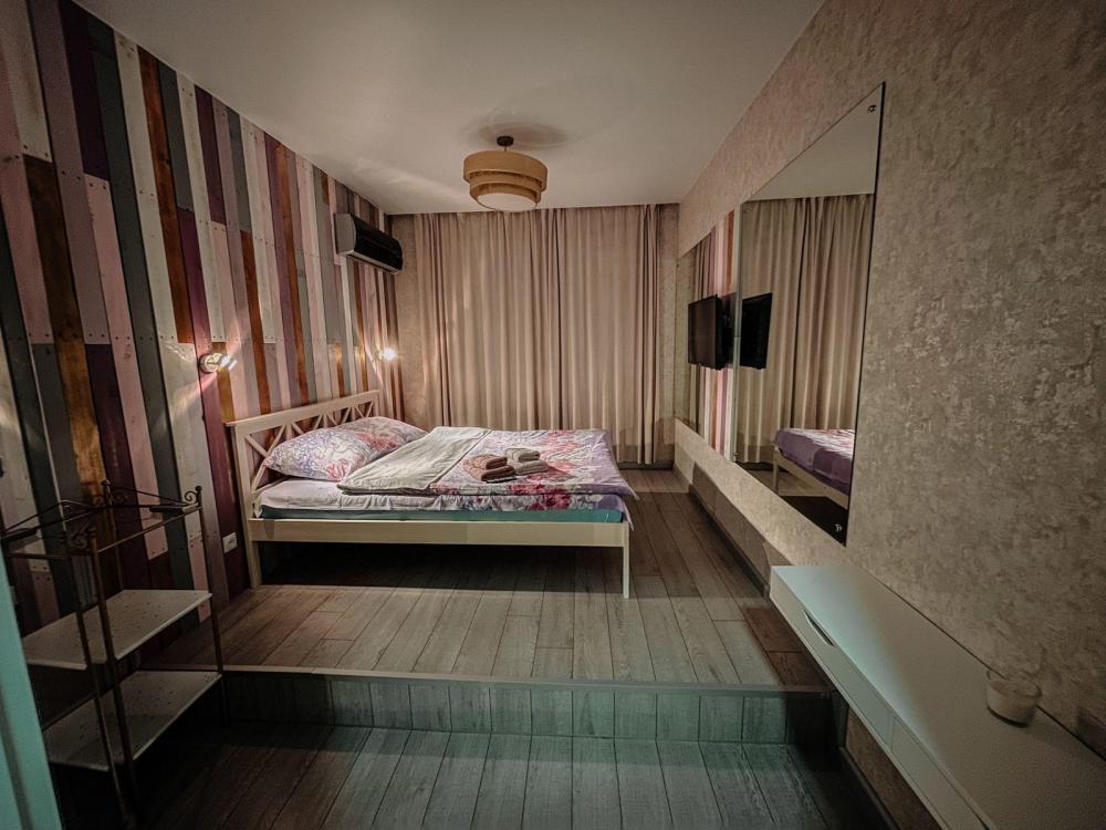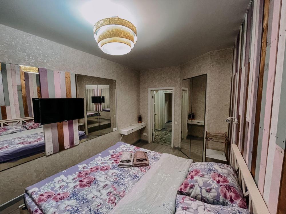 В квартире создана комфортная атмосфера для проживания. Просторная двуспальная кровать и диван обеспечат уютный отдых. Для удобства гостей предоставляются постельное белье, полотенца, утюг, фен, а также доступ к Wi-Fi и ЖК-телевизор. Кухня укомплектована посудой, а для приятных утренних моментов есть чай, кофе и сахар.