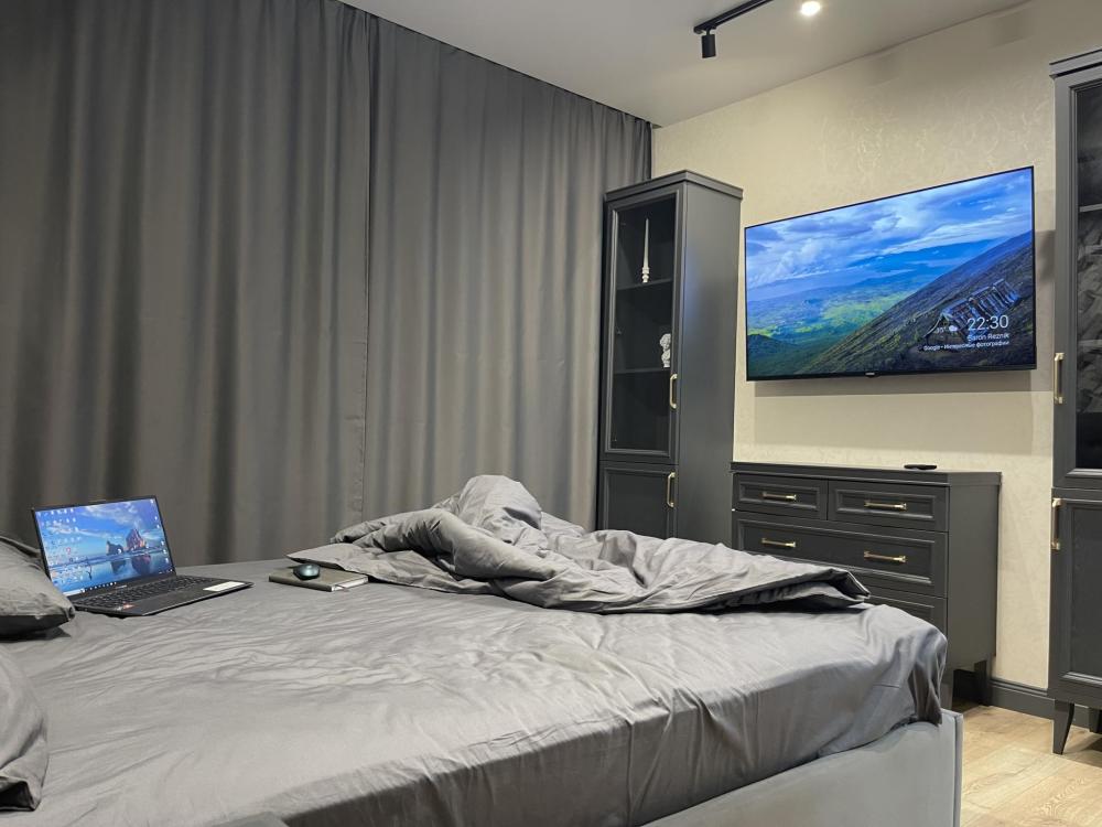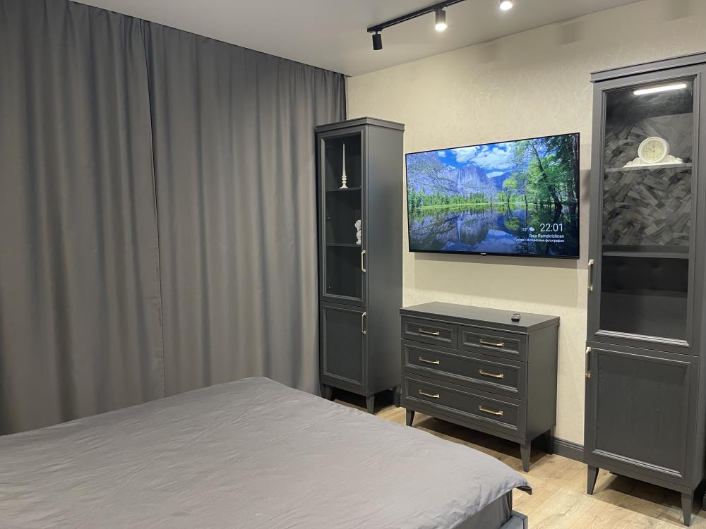 Однокомнатная квартира с хорошим качественным ремонтом. В квартире есть все для комфортного проживания. Дорогая качественная мебель по всей квартире. Теплые полы по всей квартире, кроме комнаты и лоджии, кондиционер, посудомоечная машина, стиральная машинка с функцией сушки белья (вам не нужно больше ждать когда ваше белье высохнет, вы достаете из машинки уже сухое белье). Индивидуальное отопление и горячая вода всегда. На кухне необходимая посуда для приготовления и приема пищи. Высокоскоростной Wi-Fi (500 мБит/сек), более 500 каналов ТV, подписки Wink, PREMIER, START, SMART TV 55'' (139,7 см)