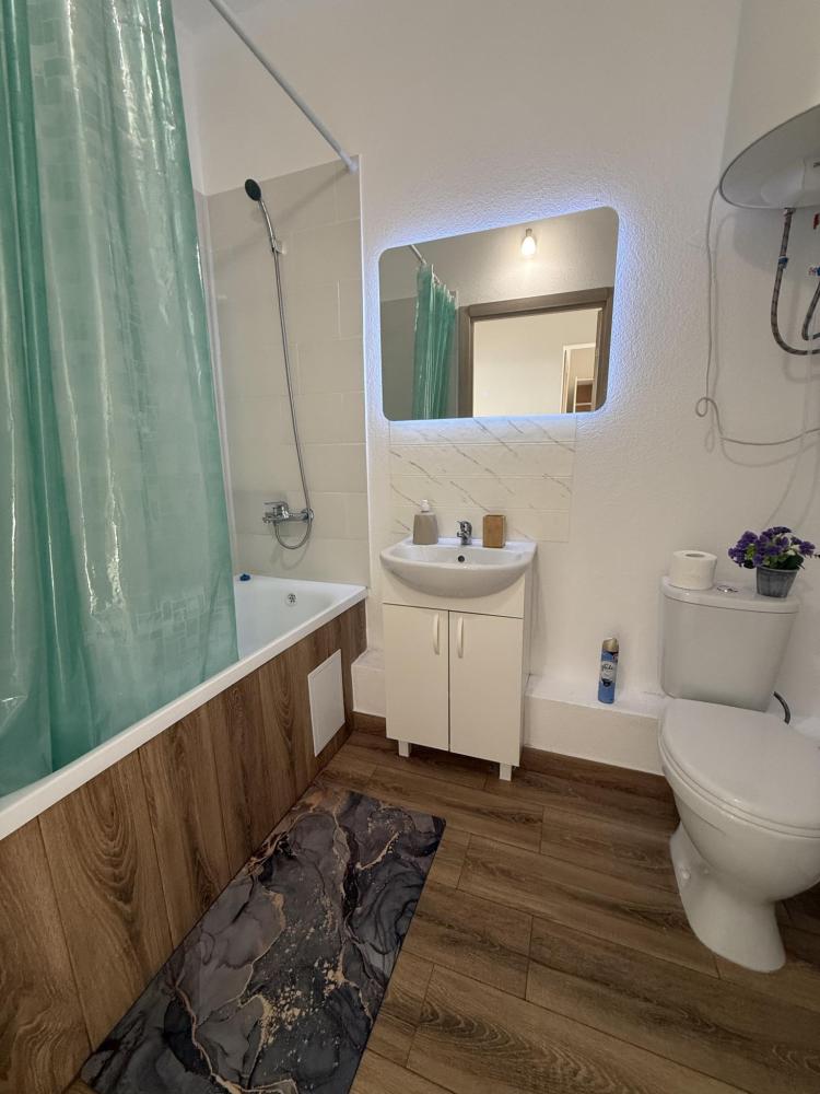 Уютные апартаменты, оборудованные всем необходимым для комфортного проживания. Гостям предоставляются средства гигиены, свежие полотенца и постельное белье. В апартаментах: двуспальный раскладной диван, оборудованная кухня с обеденной зоной, санузел с ванной.