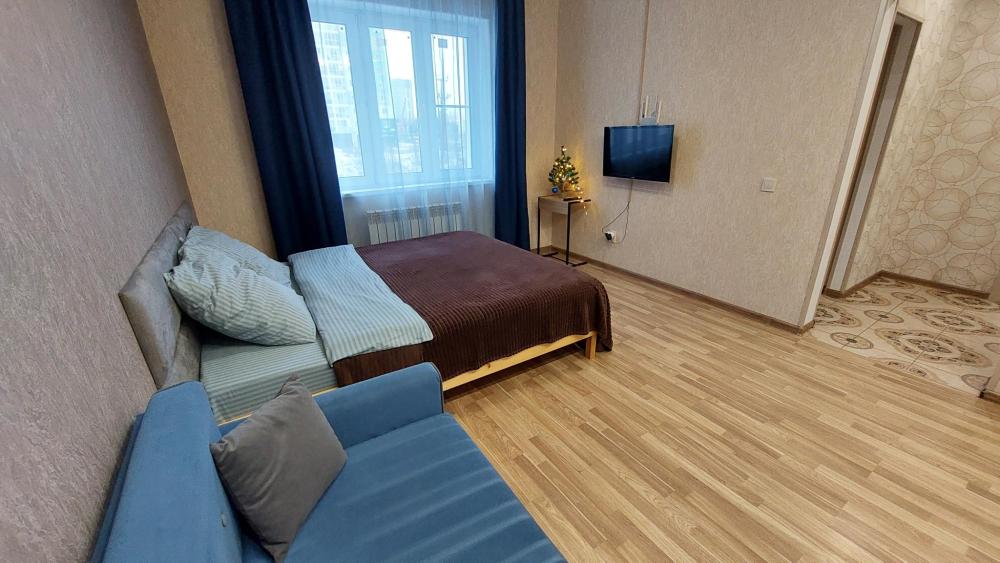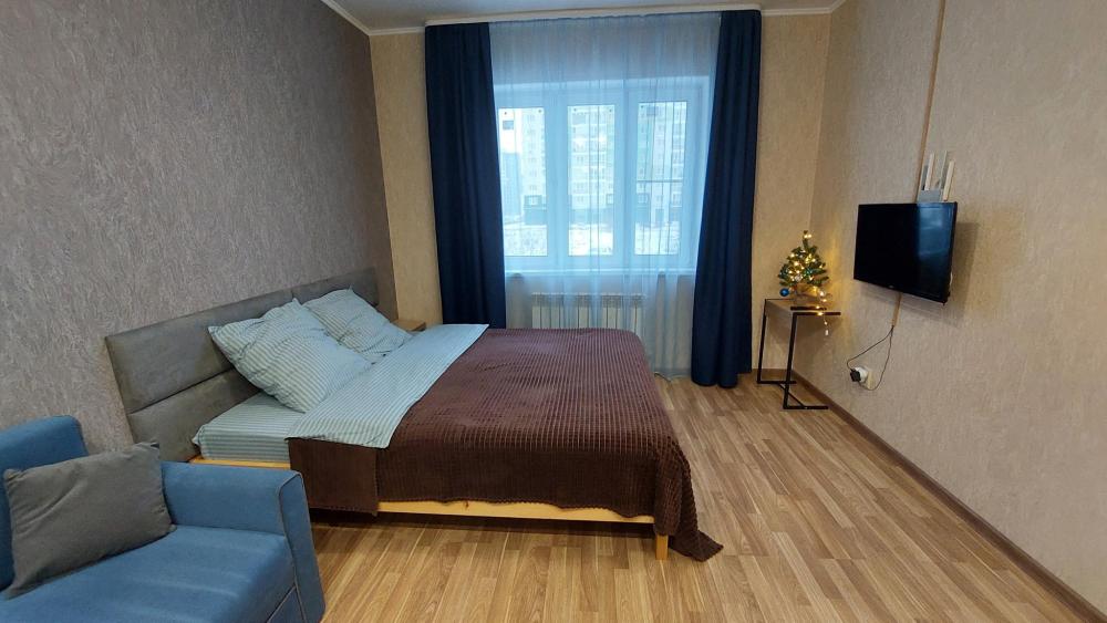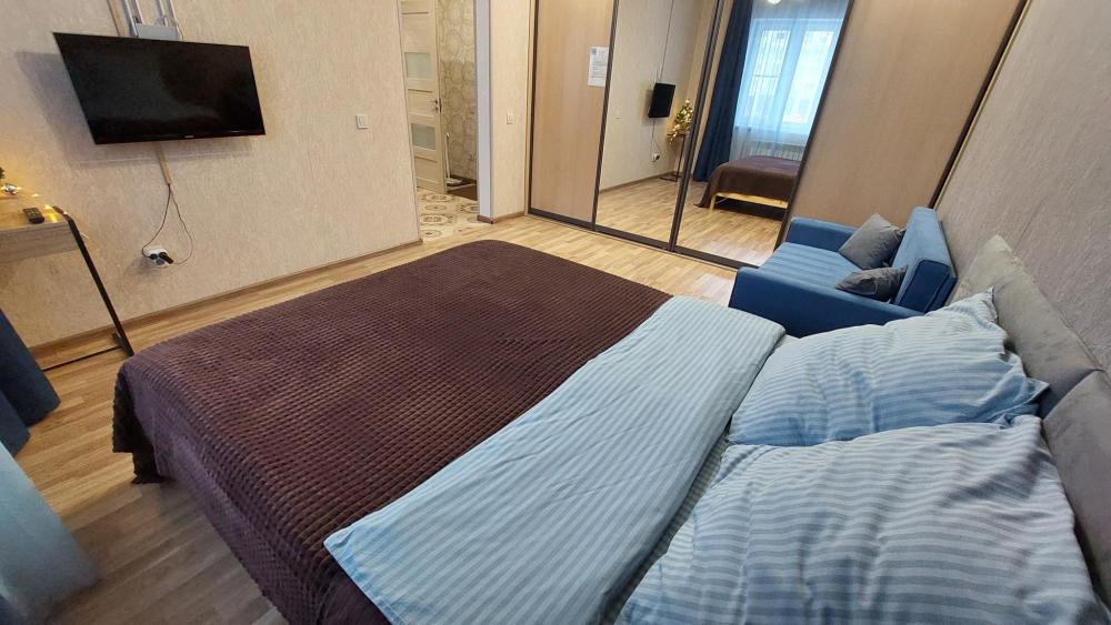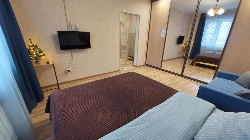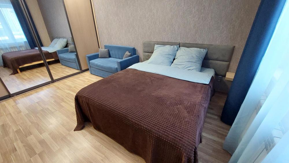 В апартаментах возможно размещение до 2 гостей, спальные места - двуспальная кровать. На кухне есть вся необходимая техника и посуда: микроволновая печь, электрический чайник, газовая варочная панель, холодильник. К услугам гостей: стиральная машина, утюг, гладильная доска, Wi Fi.