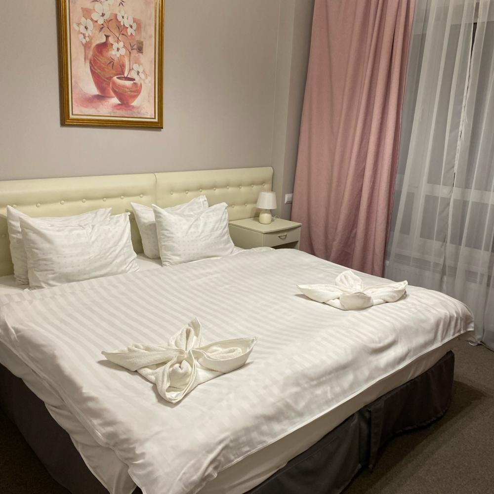 Площадь номера составляет 20 м². В номере имеется двуспальная кровать (160х200 см). Подходит для комфортного проживания 2х человек. За плату можно установить дополнительное место для ребенка. Оснащение номера: душевая ванная комната с банными принадлежностями (шампунь, гель для душа, зубной набор, бритвенный набор) кондиционер мини-холодильник телефон для связи с ресепшеном