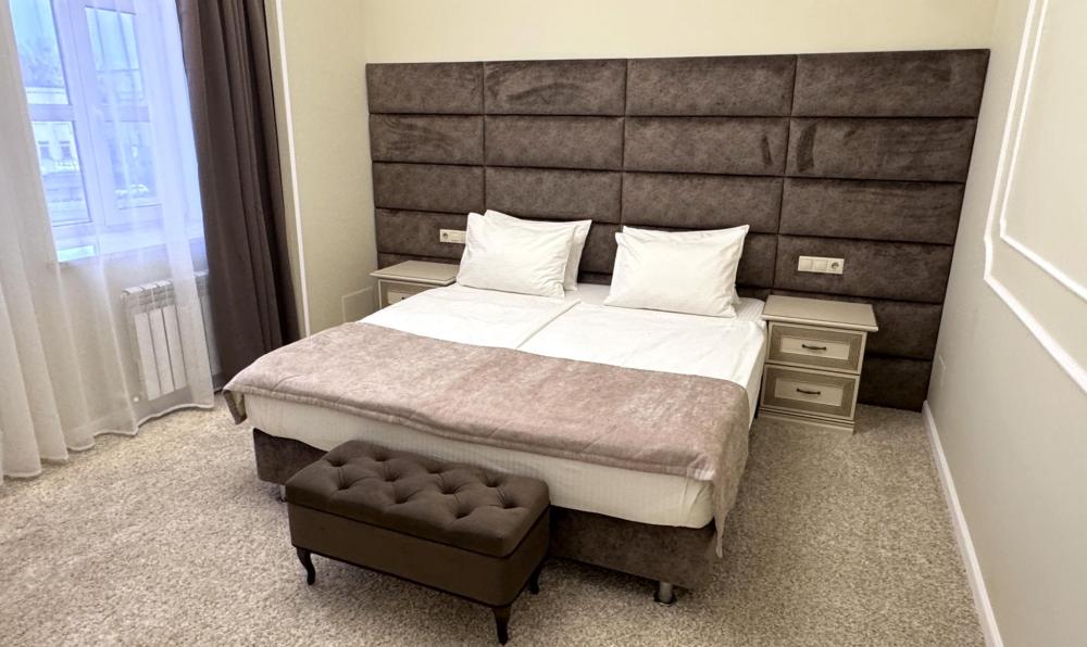 Двухместный стандартный номер с большой кроватью 1,6*2м. В номере есть все необходимое для комфортного проживания гостей: телевизор, кондиционер, телефон, сейф, тапочки, махровые полотенца и халаты, косметические принадлежности и т.д. Номера находятся на 2 3 этажах.