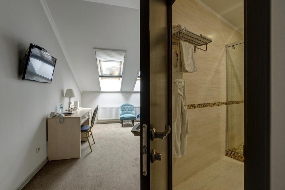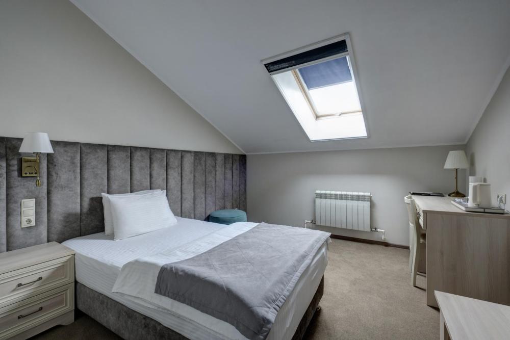Улучшенный двухместный номер с большой кроватью и джакузи в номере. Номер расположен на 4 мансардном этаже.
