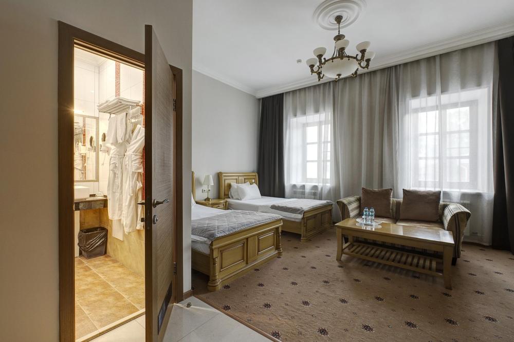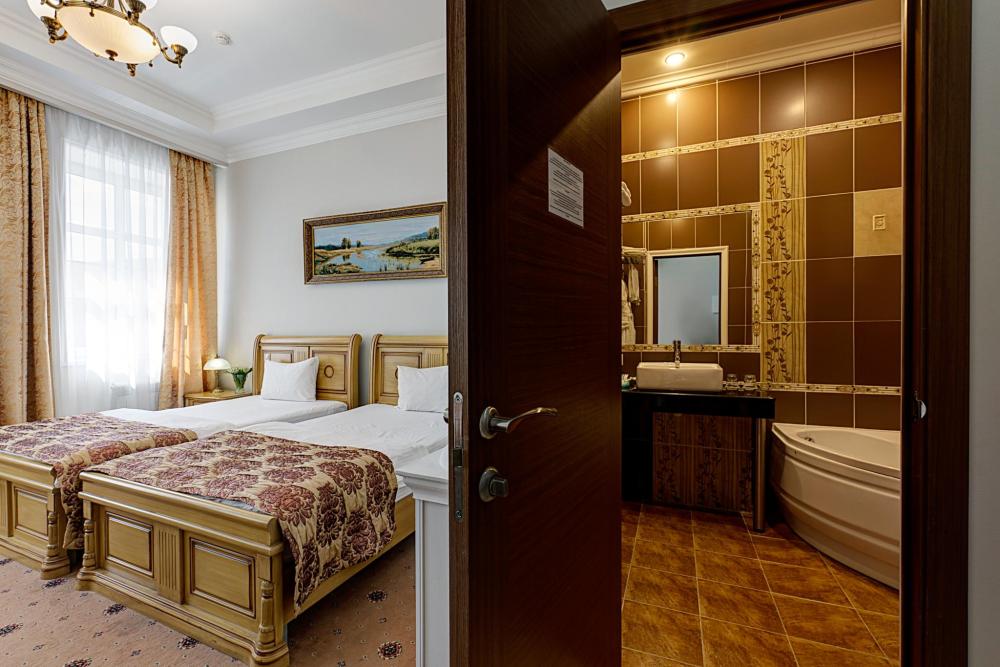 Двухместный стандартный номер с 2 отдельными кроватями. В номере есть все необходимое для комфортного проживания гостей: телевизор, кондиционер, телефон, тапочки, махровые полотенца и халаты, косметические принадлежности и т.д. Номера находятся на 4 мансардном этаже.