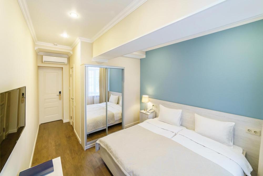 Компактный двухместный номер. Номера бывают с двумя раздельными односпальными кроватями или одной большой двуспальной. Номера могут отличаться от представленных на фото.