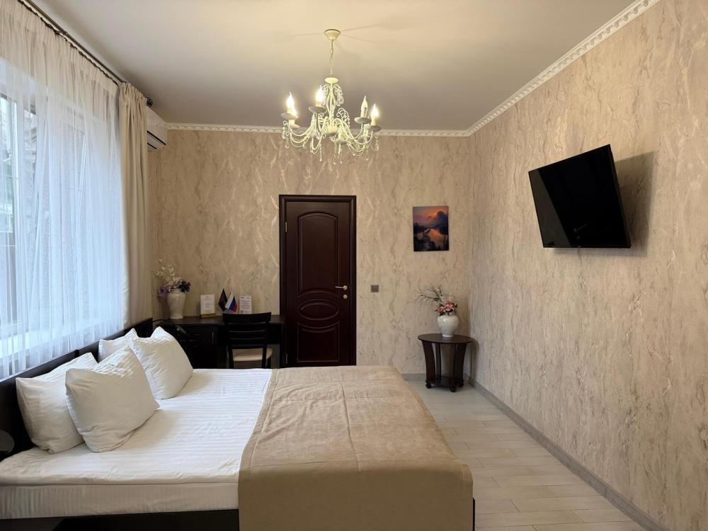 Номера с большой удобной кроватью (ширина 160 см.) сочетают в себе современный стиль и комфорт. Оснащение номера : телевизор, холодильник, чайник, микроволновая печь на общей кухне, фен, Wi-fi, кондиционер, письменный стол,тапочки, 2 тумбочки.