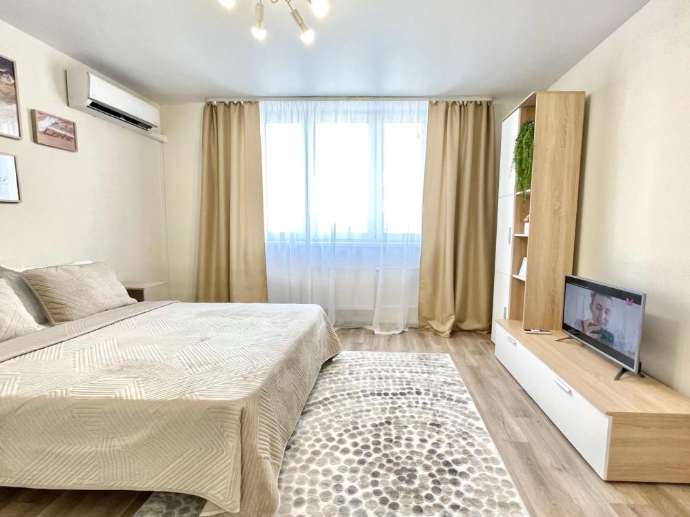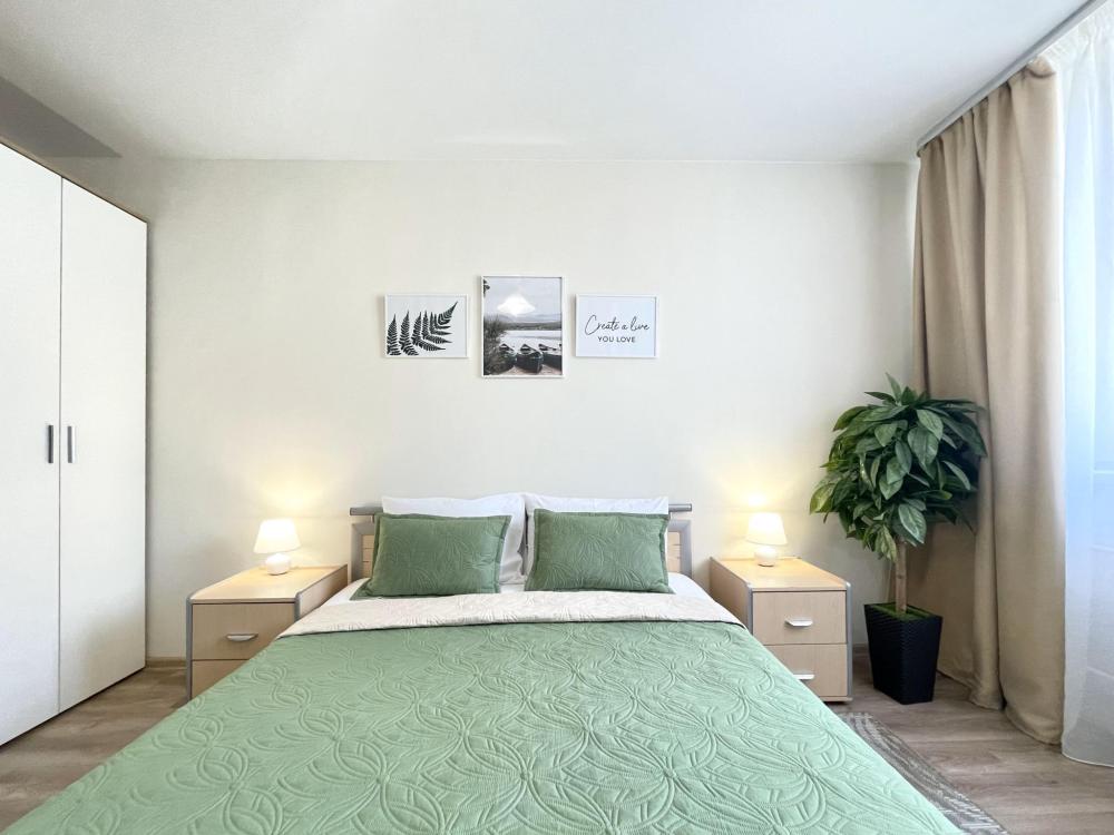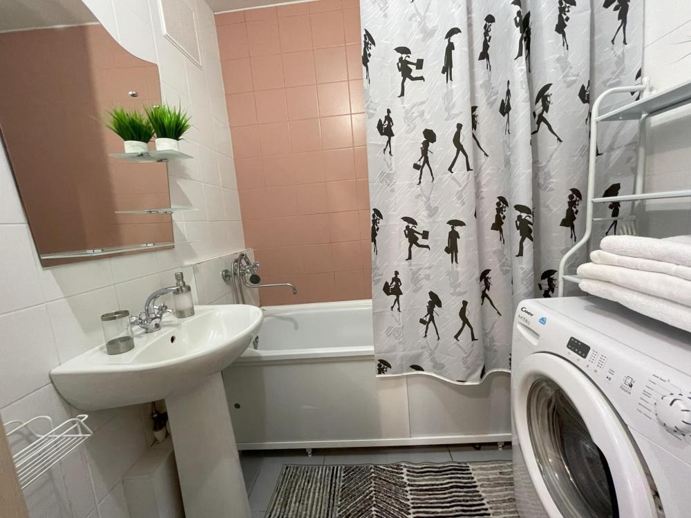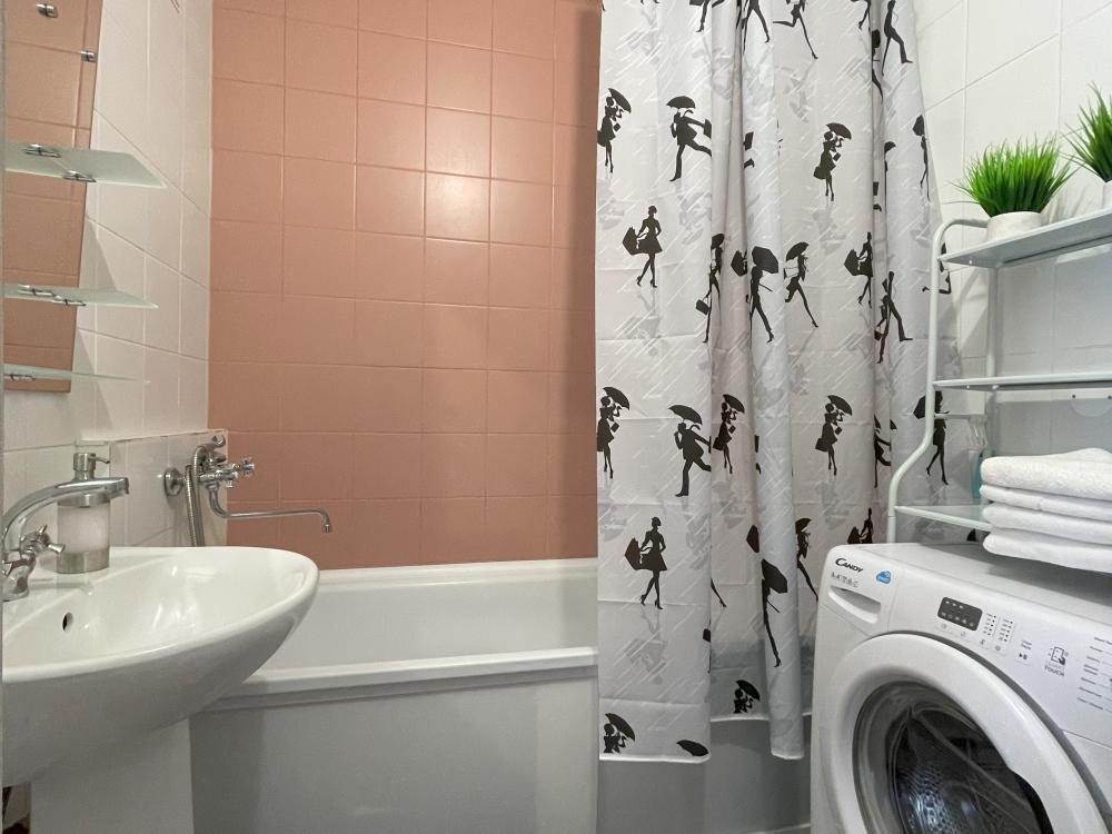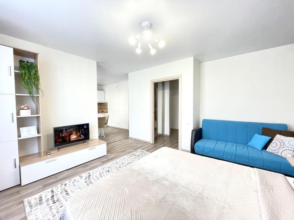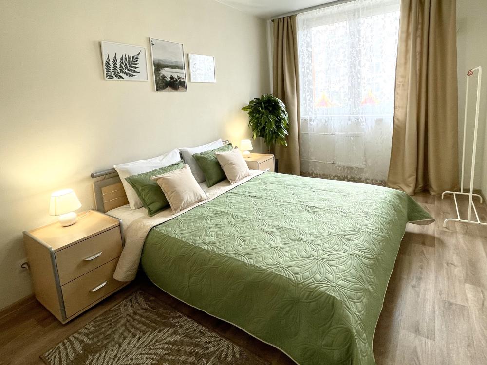 Квартира полностью оснащена всем необходимым для комфортного проживания: Wi-Fi, двуспальная кровать в спальне, двуспальная кровать, диван-кровать в гостиной, односпальная раскладная кровать. Свежее постельное бельё и полотенца, гигиенические принадлежности. Посуда, фильтр для воды. Бытовая техника: кондиционер, телевизор, холодильник, плита, духовка, микроволновая печь, чайник, стиральная машина, водонагреватель, гладильная доска, утюг, фен.