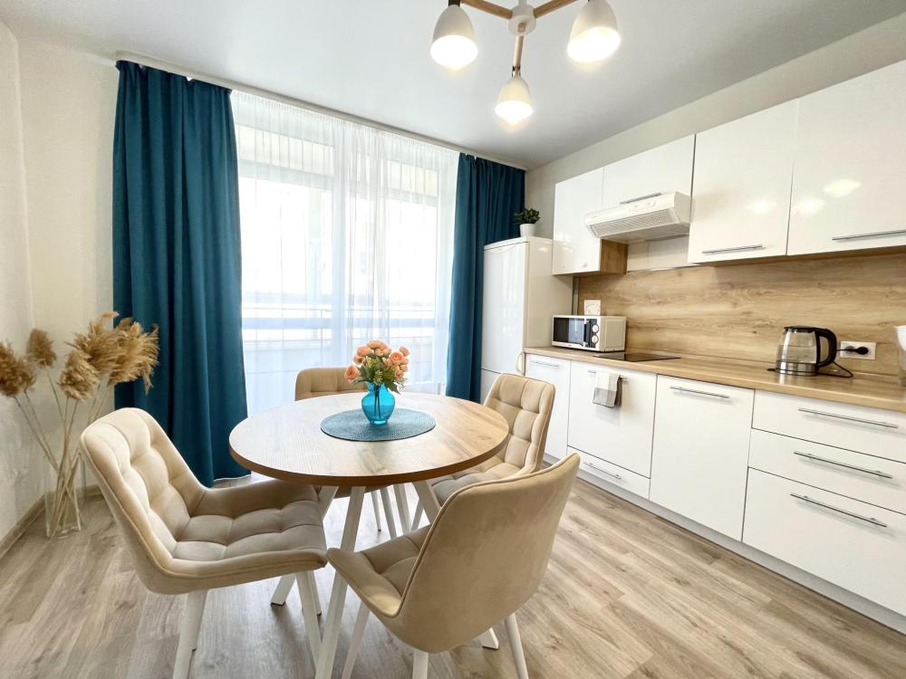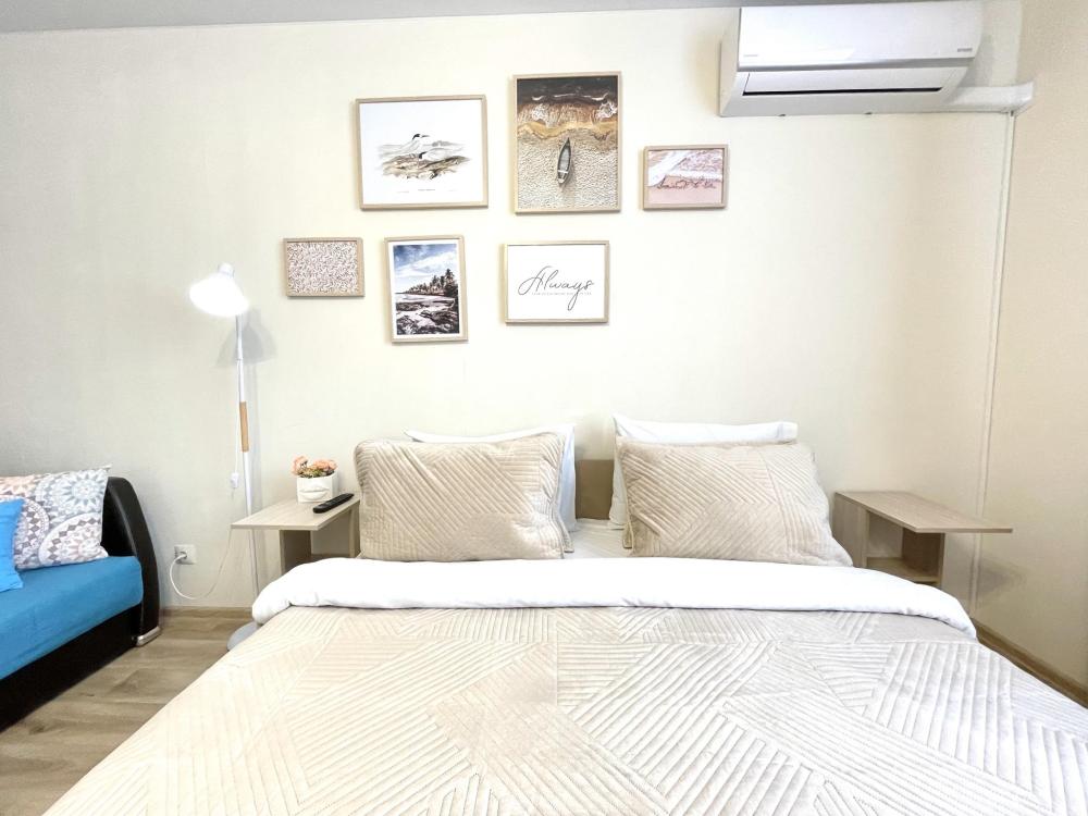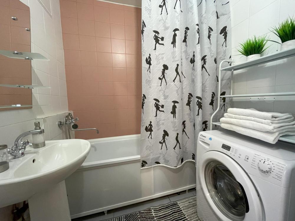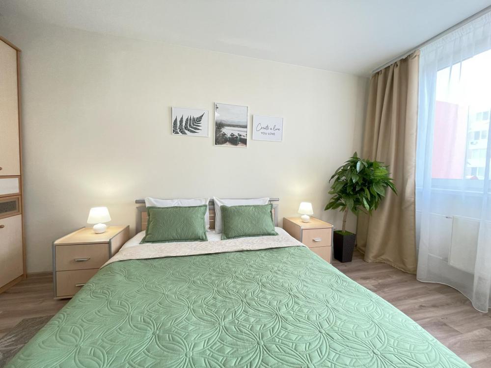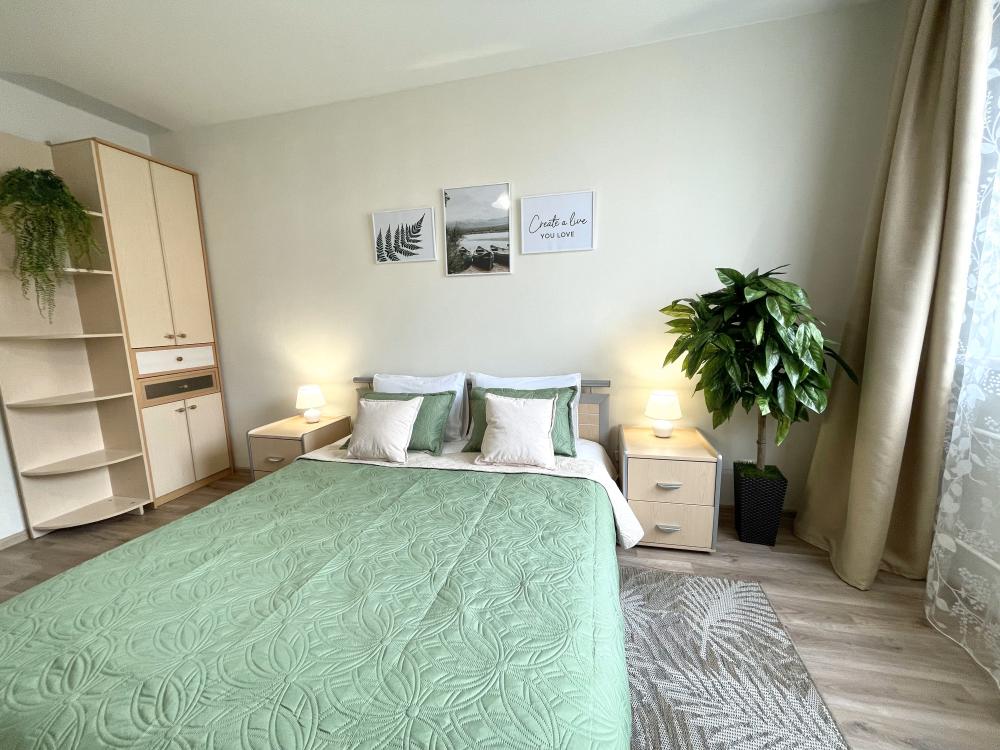 Квартира полностью оснащена всем необходимым для комфортного проживания: Wi-Fi, двуспальная кровать в спальне, двуспальная кровать, диван-кровать в гостиной, односпальная раскладная кровать. Свежее постельное бельё и полотенца, гигиенические принадлежности. Посуда, фильтр для воды. Бытовая техника: кондиционер, телевизор, холодильник, плита, духовка, микроволновая печь, чайник, стиральная машина, водонагреватель, гладильная доска, утюг, фен.