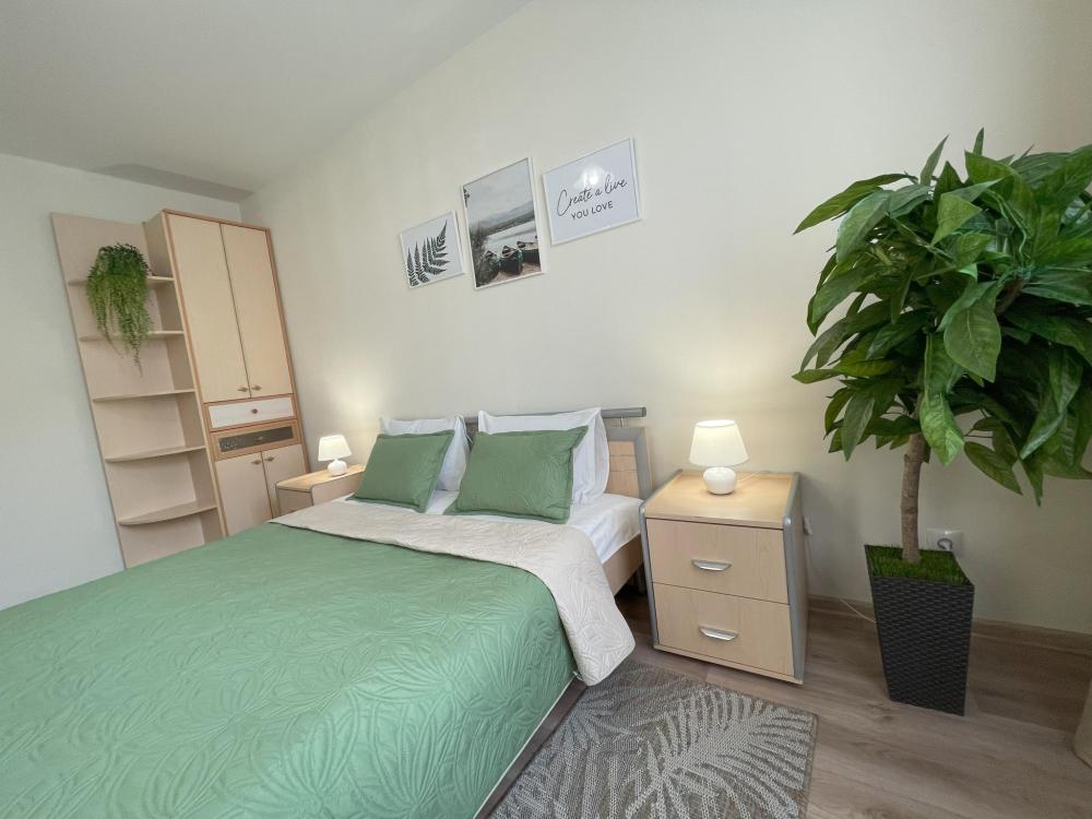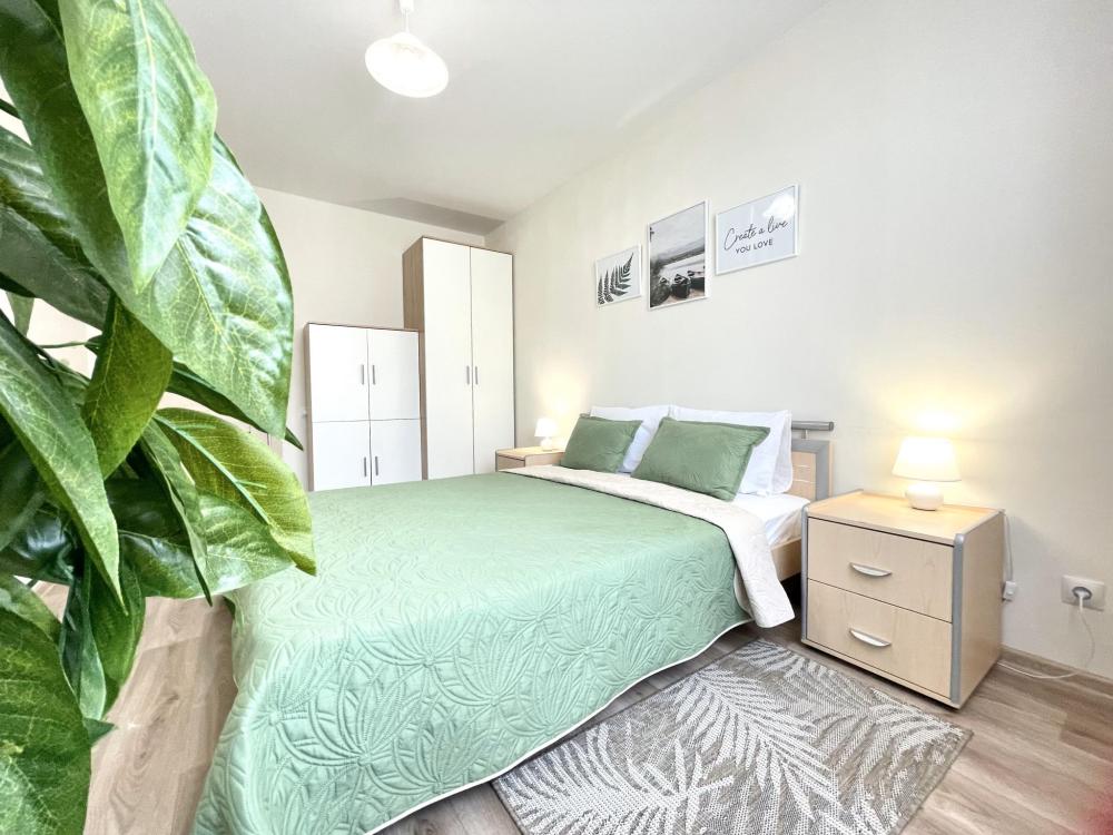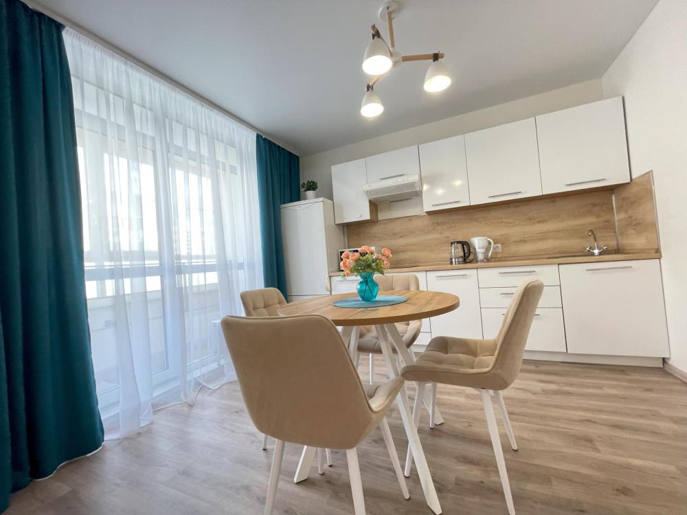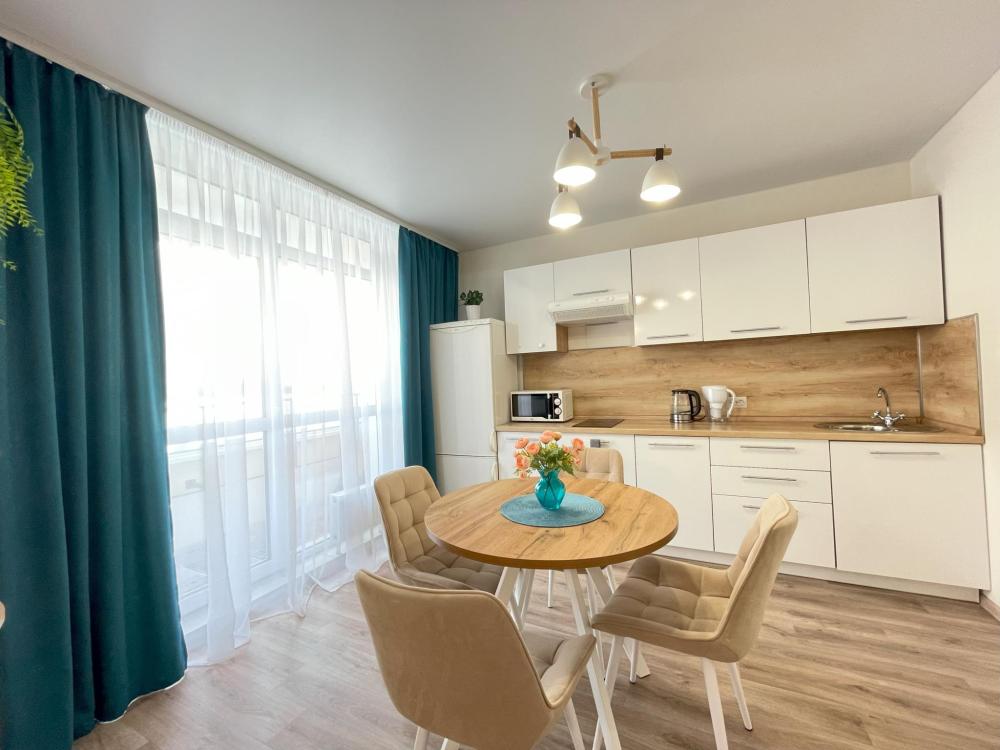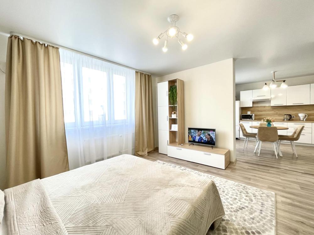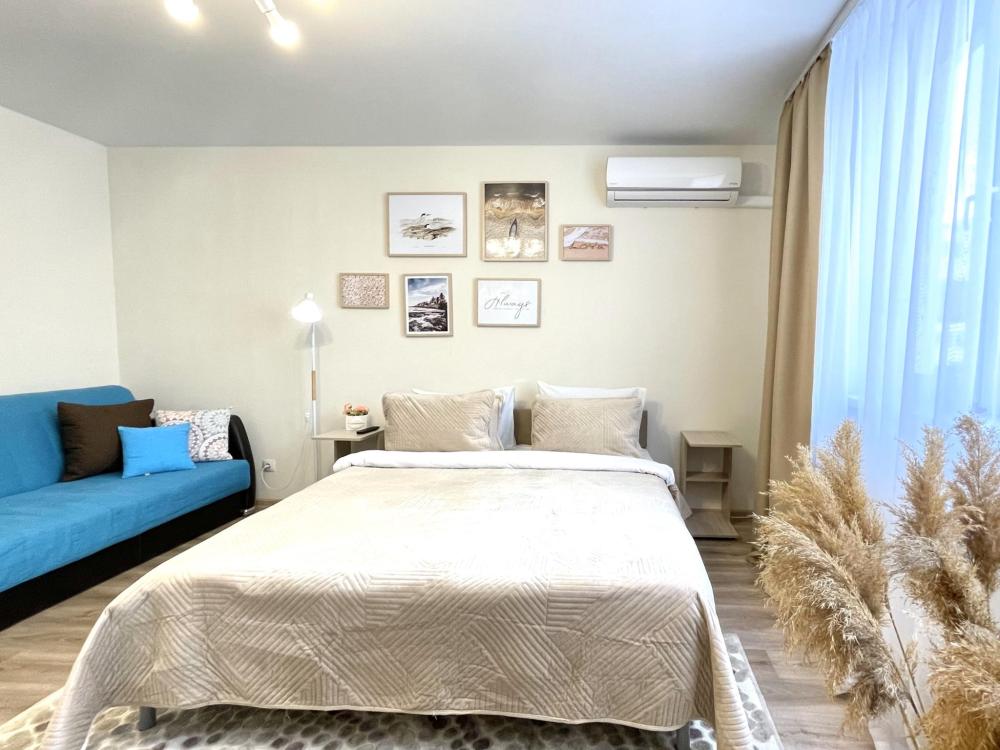 Квартира полностью оснащена всем необходимым для комфортного проживания: Wi-Fi, двуспальная кровать в спальне, двуспальная кровать, диван-кровать в гостиной, односпальная раскладная кровать. Свежее постельное бельё и полотенца, гигиенические принадлежности. Посуда, фильтр для воды. Бытовая техника: кондиционер, телевизор, холодильник, плита, духовка, микроволновая печь, чайник, стиральная машина, водонагреватель, гладильная доска, утюг, фен.