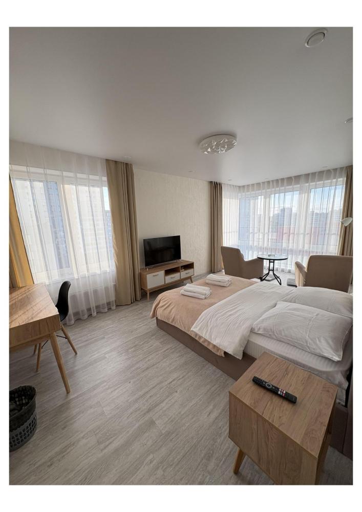 Полноценная 2 комнатная квартира с просторной кухней гостиной и панорамным видом на город. Имеется вся необходимая бытовая техника, посуда, гигиенические принадлежности, Wi-Fi, ТV, кондиционер.