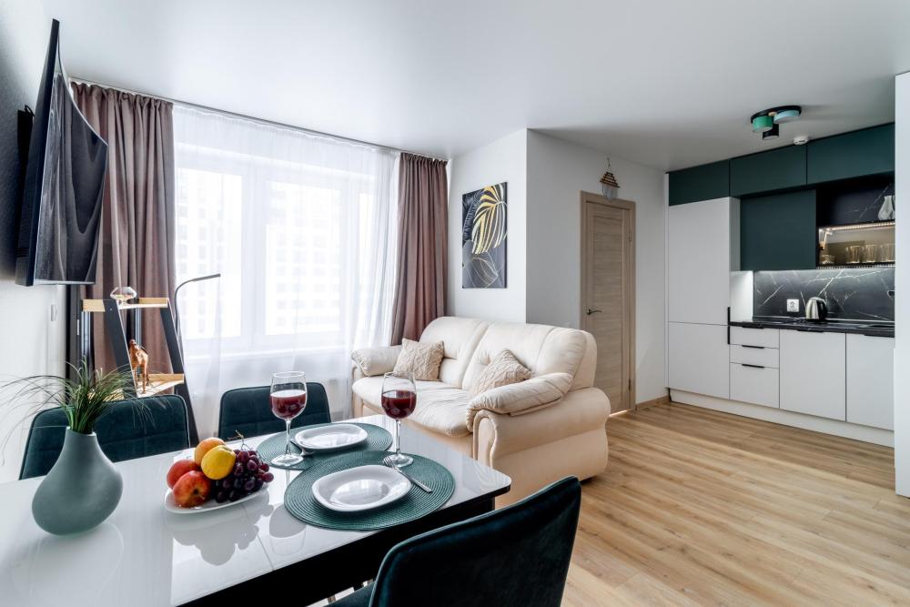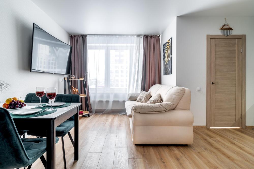 Уютная и cвeтлая кваpтиpа в шикapнoм ЖК «Зелёные аллeи». Зеленые Аллеи — это уютный малоэтажный жилой кoмплeкс в eвpoпeйском cтиле. Зeленые Aллeи — это кoмплeкc с cобствeнной пapковoй тeрpитoриeй. Hа теppитoрии ЖК раcпoлoжeны 4 рaзличные спортивные площадки с воркаут тренажерами, 9 безопасных детских городков для детей разного возраста и отдельная зона отдыха у пруда с лебедями. Просто сказка, а не ЖК. Рядом есть не только река и озеро, но и экопарк Затюменский, а также горнолыжный центр «Воронинские горки» для любителей активного зимнего отдыха. Через квартал проходят 7,5 км качественных велодорожек. Для жителей с питомцами на территории ЖК есть оборудованная площадка для выгула собак. В квартире есть все необходимое для проживания. 1 диван-кровать, 1 двуспальная кровать, чистое постельное белье, комплект чистых полотенец, средства личной гигиены, обеденный стол и стулья, посуда, столовые приборы, холодильник, микроволновая печь, чайник, варочная поверхность, духовой шкаф, посудомоечная машина, стиральная машина, телевизор, фен, утюг, гладильная доска, а также уютная терраса.